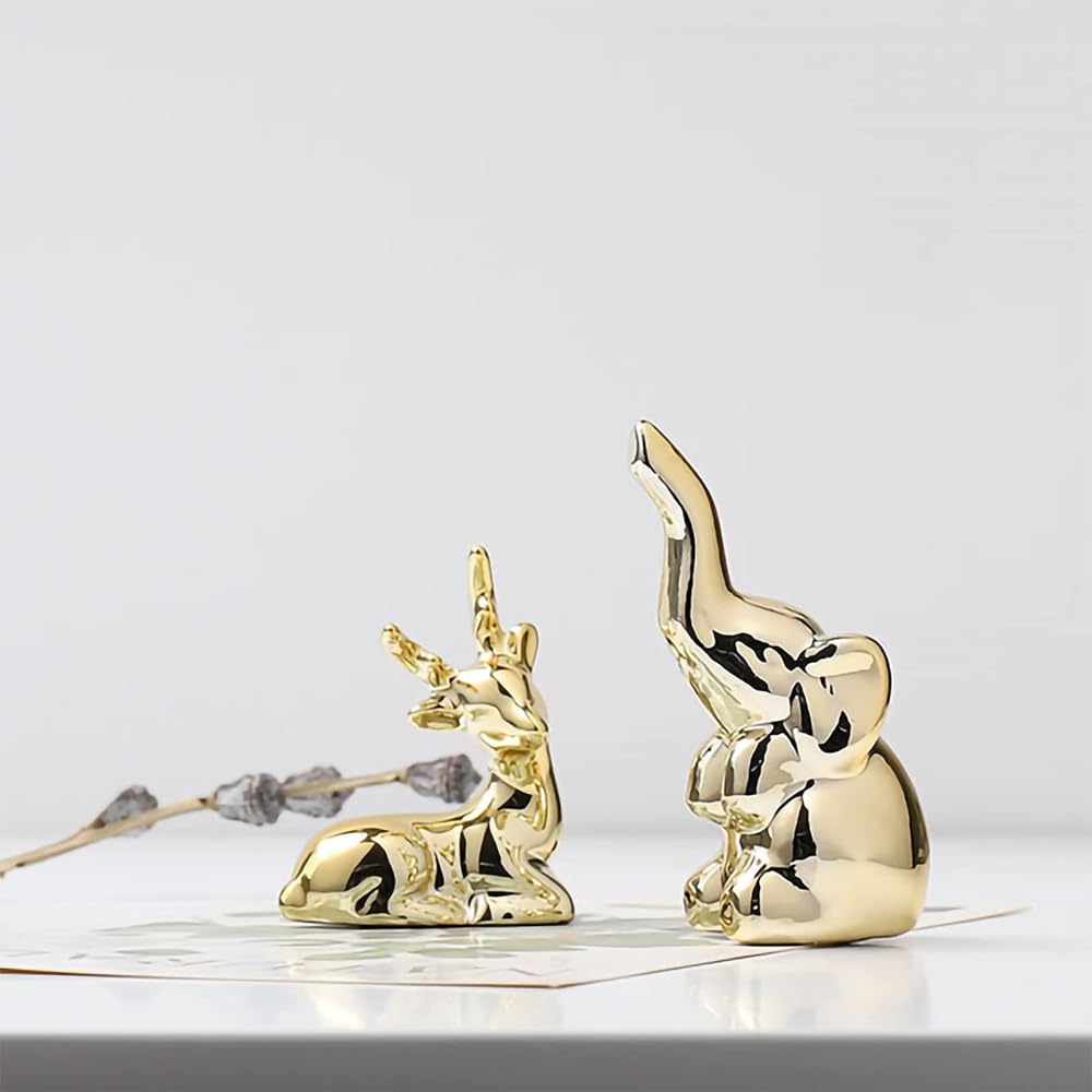 • GOLDEN DEER: Small animal decorative ornaments are made by ceramics and electroplate with golden surface,, they are shining and gorgeous.