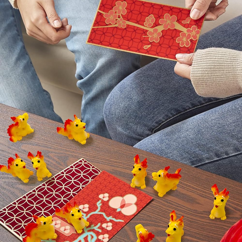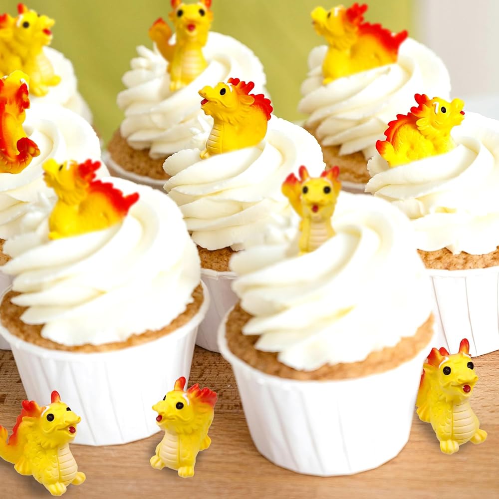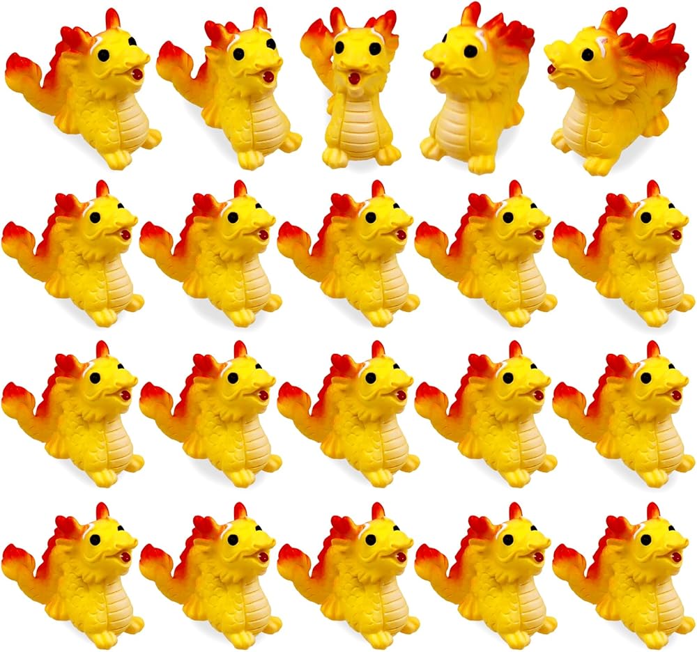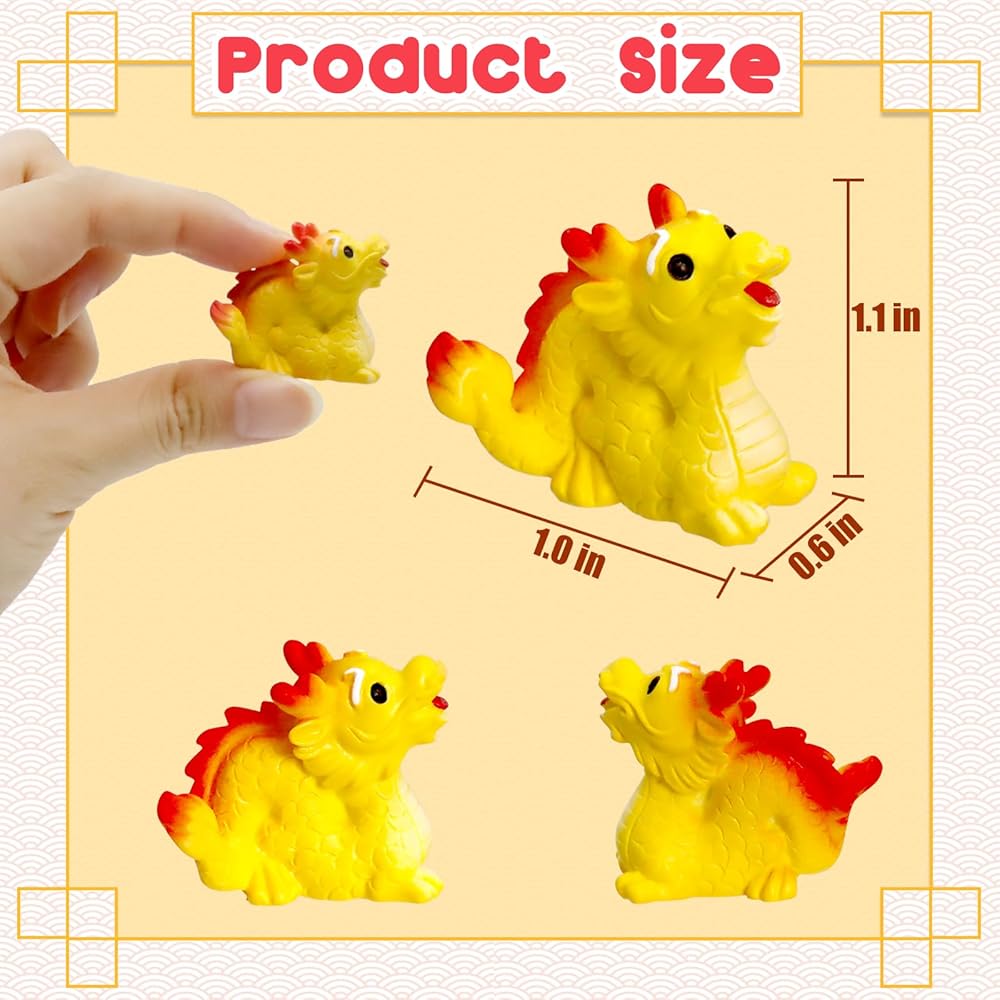 • SIZE: Measuring about 1.38 x 1.14 inches/ 3.5 x 2.9 cm, our mini plastic dragons are compact and lightweight, which can be effortlessly placed and moved around as a versatile year of dragon cabinet zodiac dragon figurine, fengshui new year cupcake topper or mascot animal for any occasion.