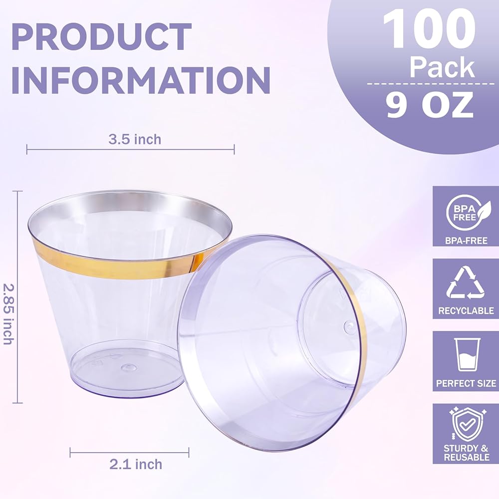 كمية كافية - 100 قطعة من أكواب الحفلات يمكن أن تلبي مجموعتك الكبيرة أو احتياجاتك طويلة الأمد، والسعة الكبيرة 9oz مناسبة لحمل كوب كامل من القهوة أو الشاي.