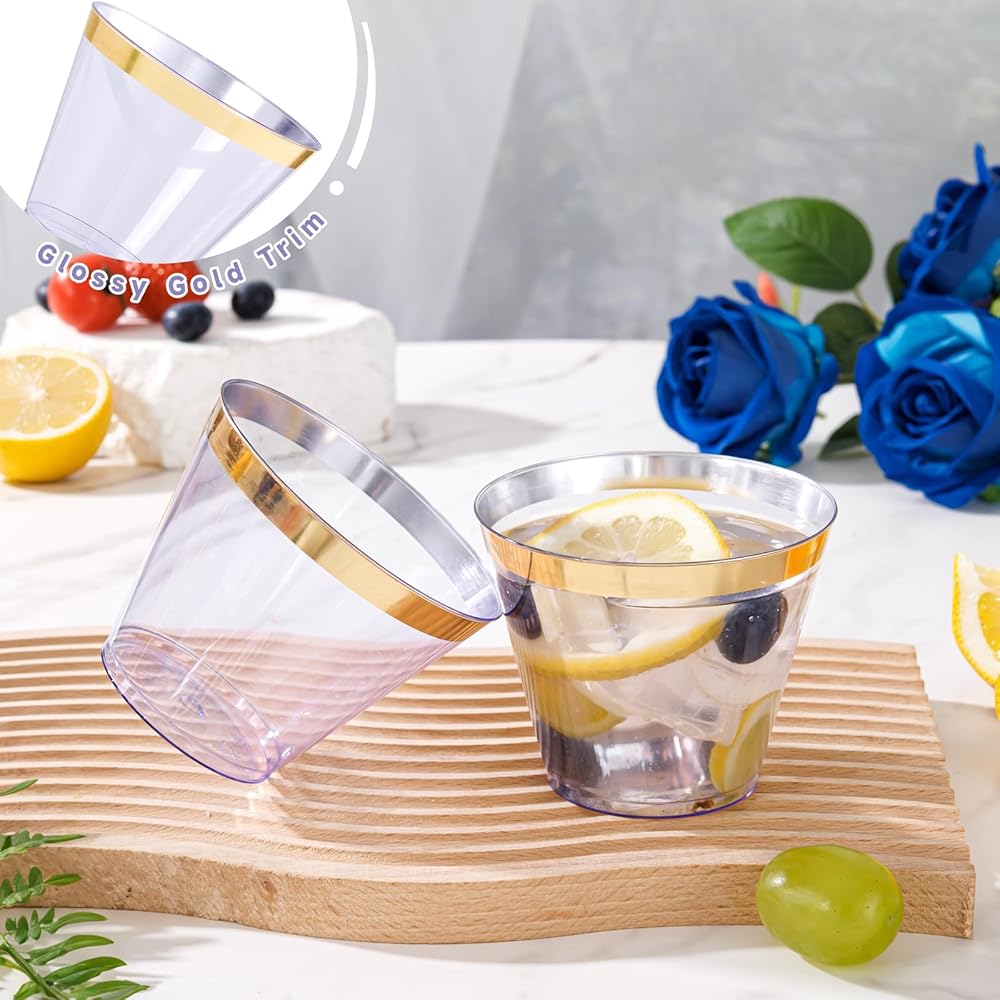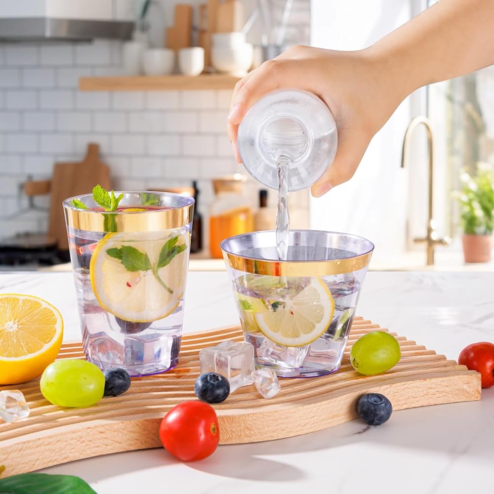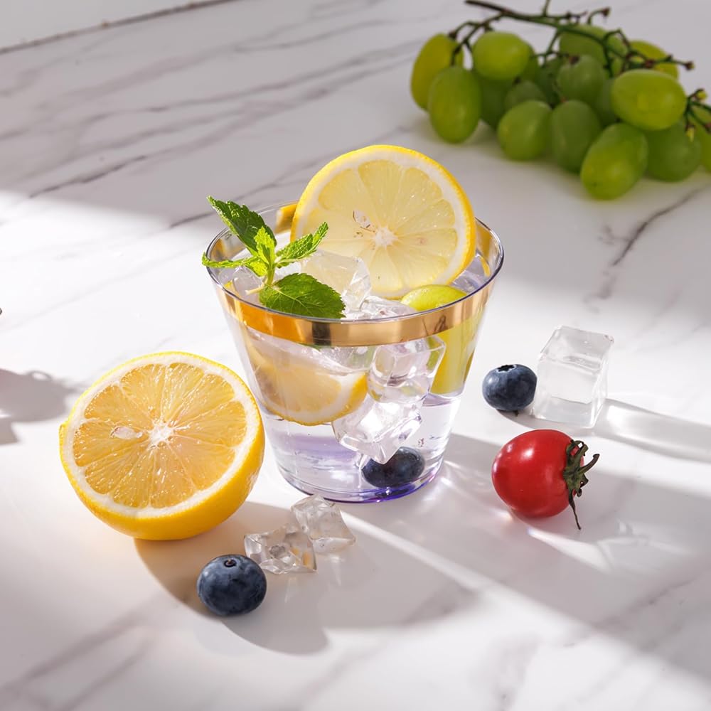 متانة قوية: عادة ما تكون الأكواب البلاستيكية الأنيقة ذات الحواف الذهبية مصنوعة من البلاستيك عالي الجودة وتتميز بمتانة عالية. فهي ليست عرضة للكسر أو التشوه أو التلف في ظل ظروف الاستخدام العادية، لذلك يمكنها الصمود أمام اختبار الزمن.