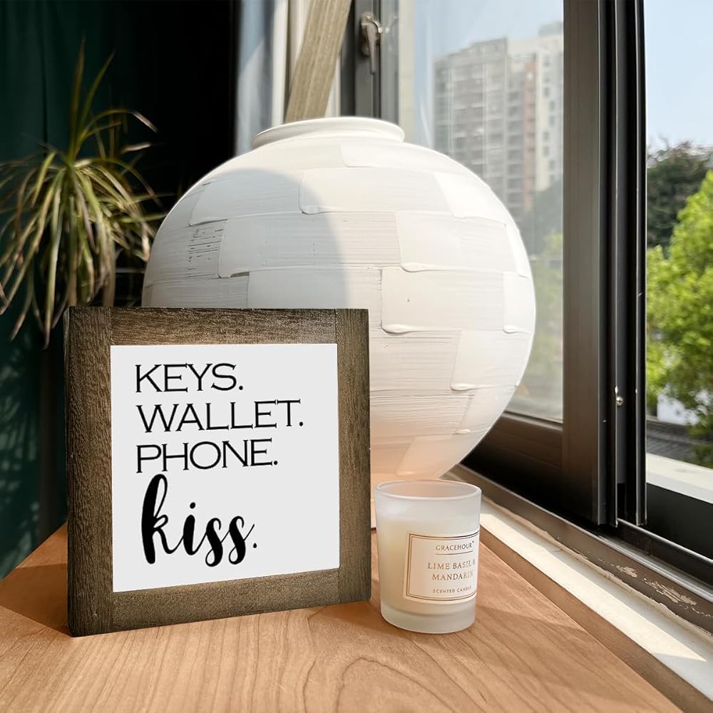 علامات خشبية ملهمة، ديكور مكتب لويحات خشبية مربعة، لوحات زخرفية لشرفة الباب الأمامي، ديكور خزانة دخول قائم بذاته، ديكور مدخل للرف، ديكور منزلي ريفي، مفاتيح محفظة الهاتف قبلة E