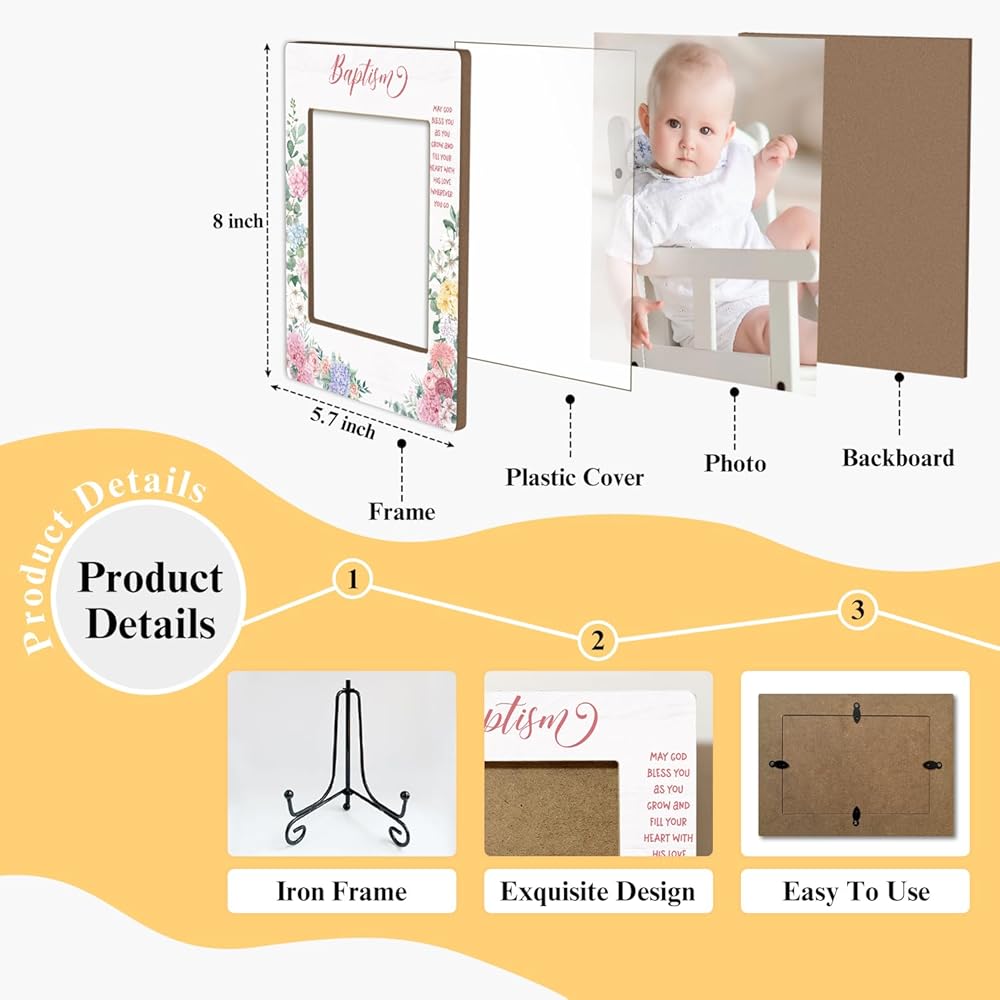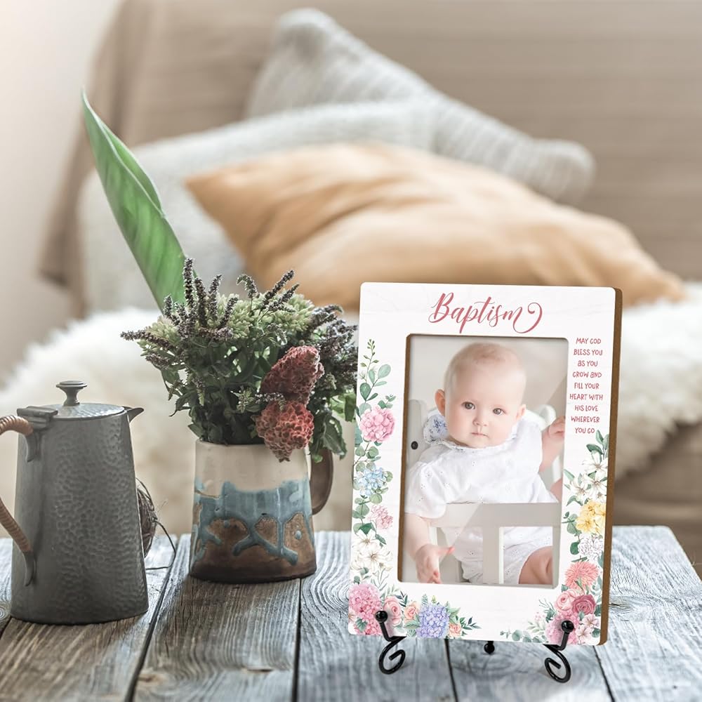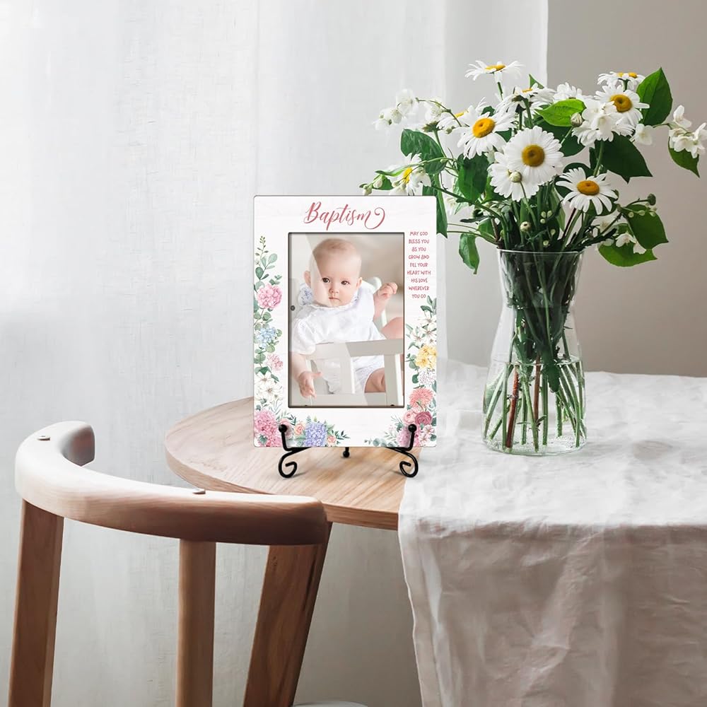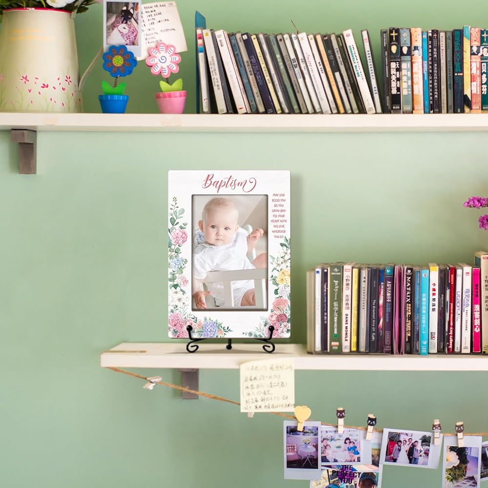إطار صور خشبي من Baby Blessings Baptism هدايا مسيحية هدايا معمودية للطفل من العرابين، إطار صور خشبي مع حامل حديدي لسطح الطاولة أو شاشة سطح المكتب (صورة عمودية 4x6 بوصة) - 43