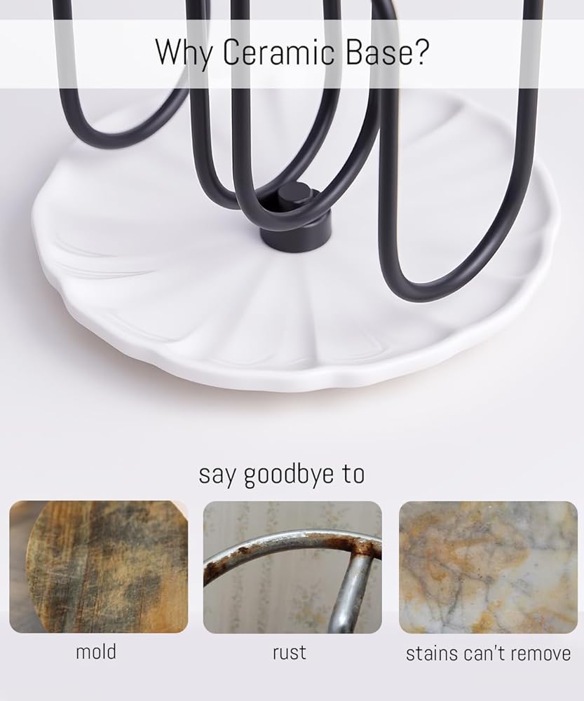 • أنيق ومستقر: يوفر مزيج قاعدة السيراميك البيضاء مع حامل معدني ذهبي مظهرًا أنيقًا ومتطورًا. يزن حامل مناديل فروميوم حوالي 1 كجم، ويضمن ثباتًا استثنائيًا ويظل مستقيماً دون انقلاب