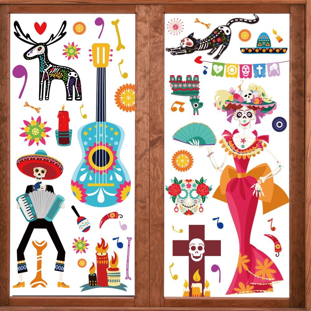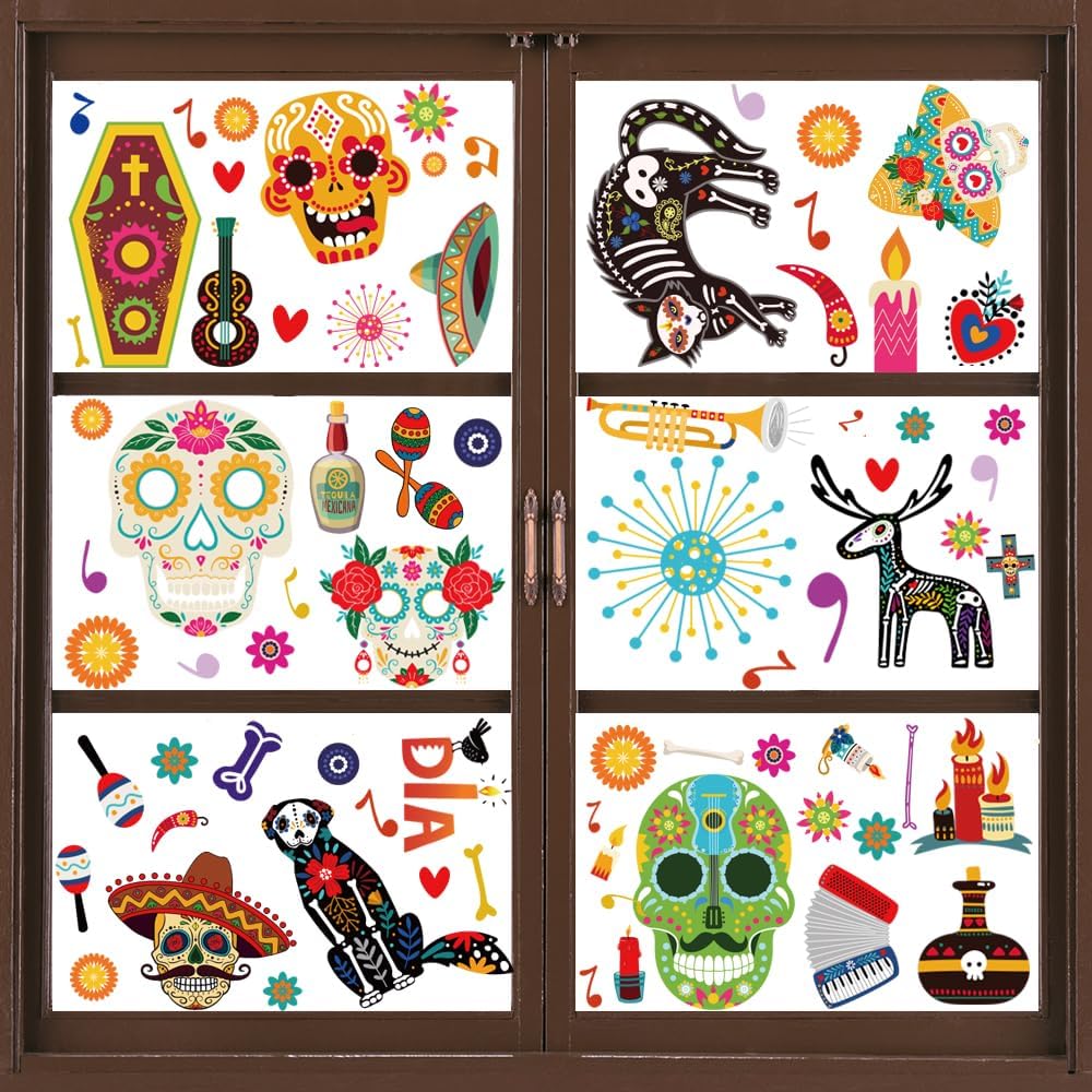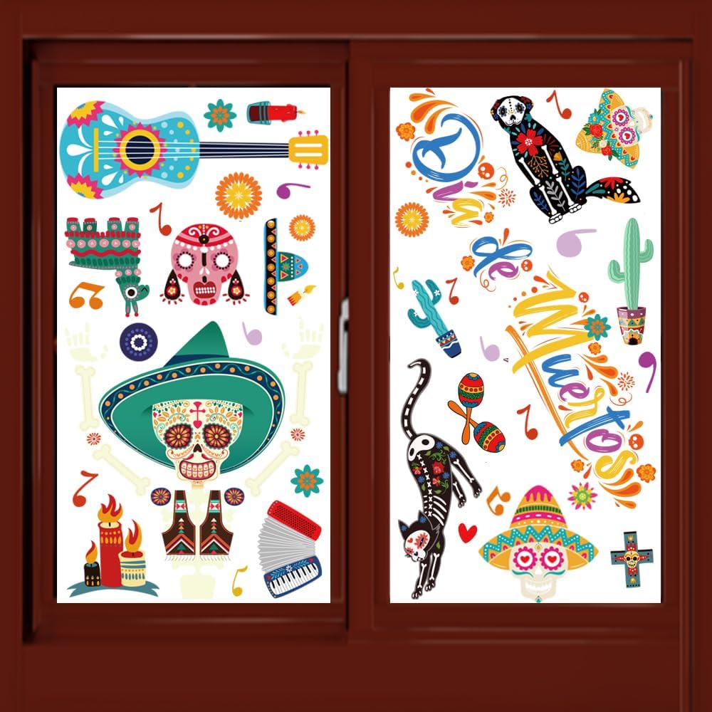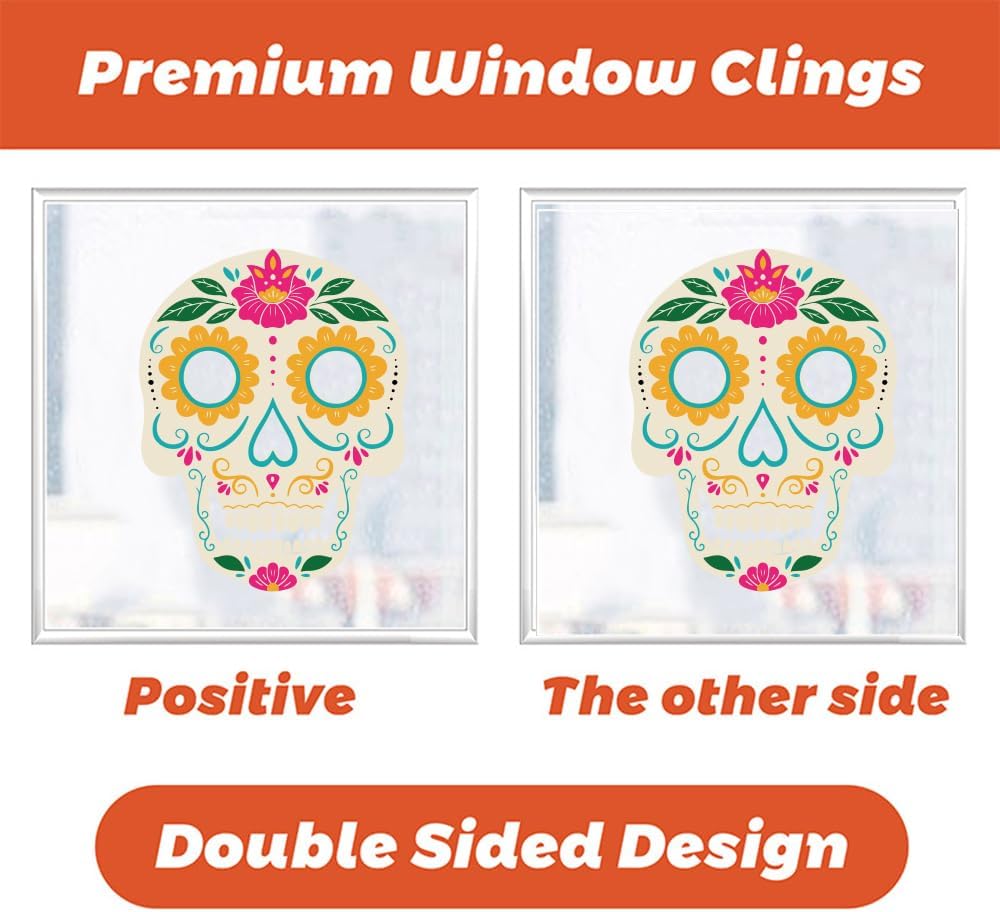 Widely Applicable: Our Halloween window cling stickers are perfect for Halloween party, Day of the Dead party, Mexican fiesta party, can be applied to any smooth surface, such as glass doors, shop window panes, ceramic tiles in kitchen or bathroom, home appliance, dorm or retail store, coffee house, restaurant.