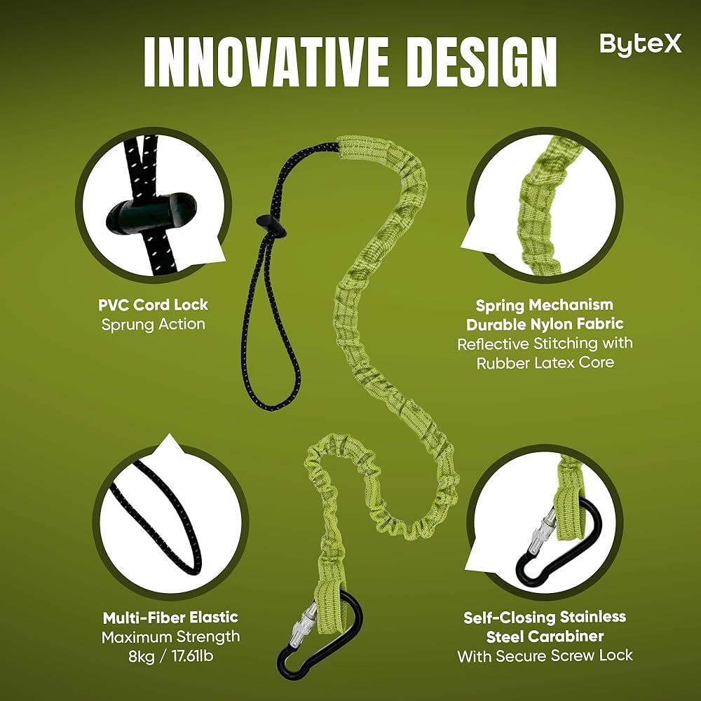 قابل للتمدد والسحب: يبلغ قياس حبل الأداة هذا حوالي 90 سم/35.4 بوصة عند الركود ويمتد إلى حوالي 165 سم/65 بوصة. يدعم الحد الأقصى لوزن 8 كجم/17.6 رطل، مما يوفر راحة كبيرة.