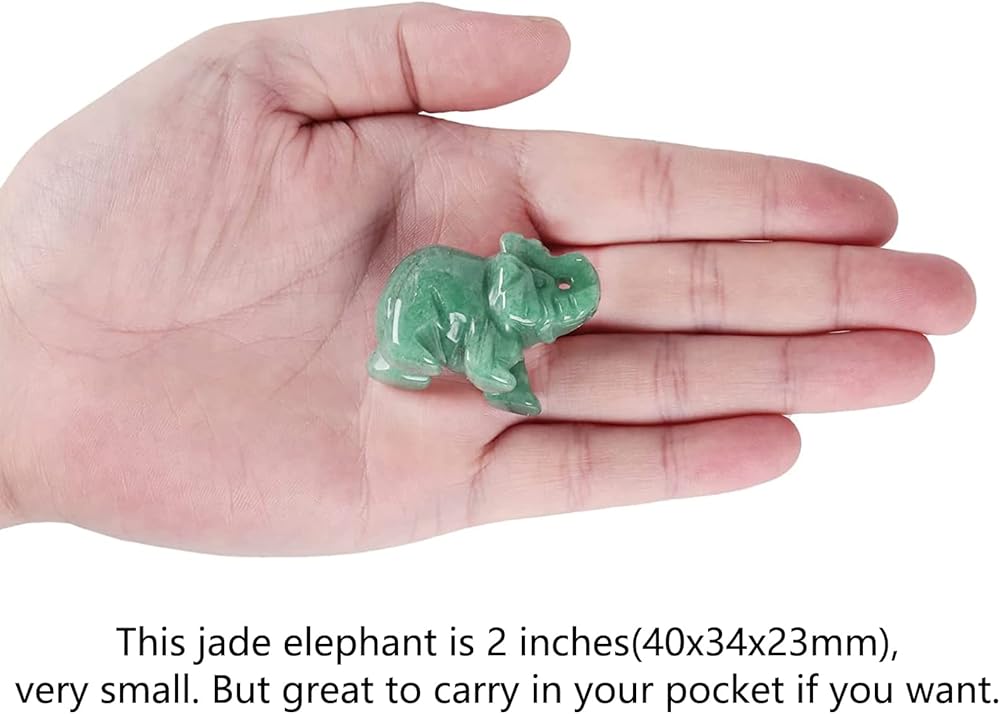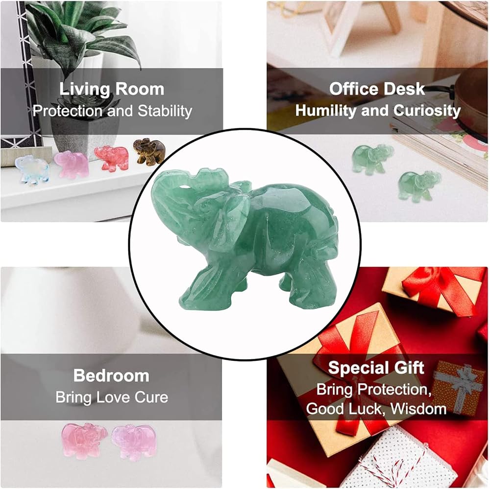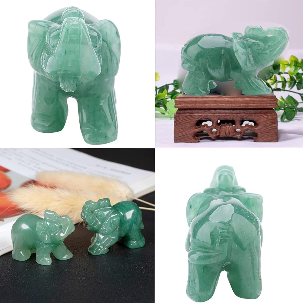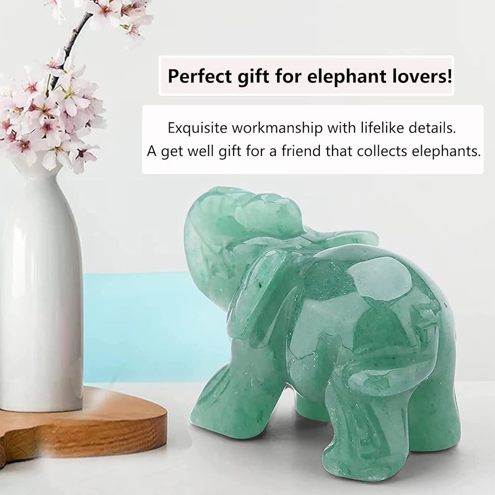 AVENTURINE MATERIAL - The elephant figurine is made of green aventurine with smooth surface. Exquisite workmanship with lifelike details, a good gift for your friends or yourself.