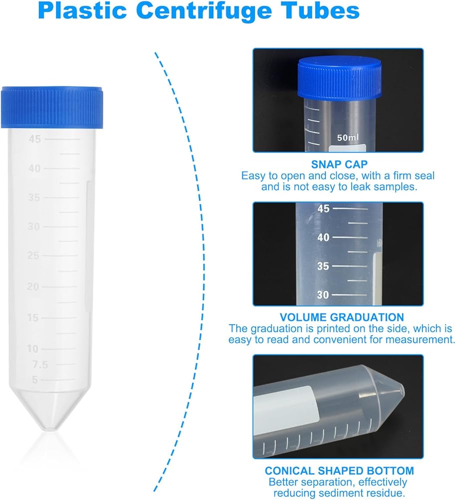 1. The plastic test tube is made of plastic material, which is odorless, durable and conical, clear and easy to observe, not easy to break and will not slip during use.