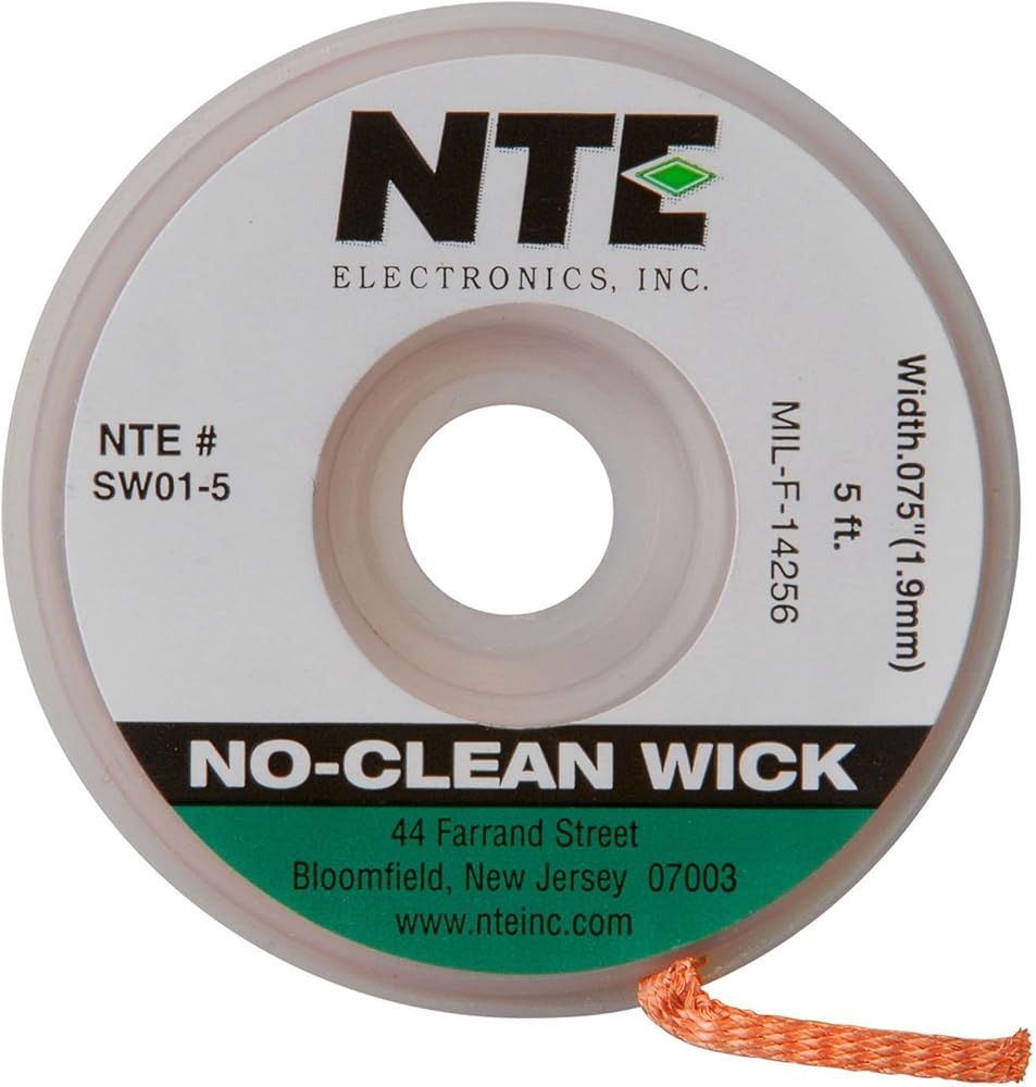 NTE Solder Wick is made from fine copper wire woven together with a no-clean flux formula added to it to increase absorption.