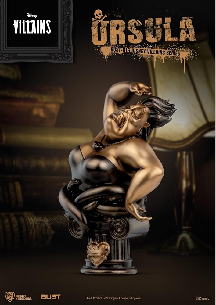 From Beast Kingdom. Beast Kingdom has launched the highly anticipated Disney Villain Series stone sculptures. The busts are designed in a stone sculpture style, featuring the classic Roman column features as the base. Each character's unique exclusive pattern is depicted on the base, representing their darkest skills and thoughts from the animation! These sculptures are designed in an antique bronze color scheme, giving them a unique texture and gloss while portraying the evil charm and arrogant attitude of the villains. Collect the entire series and enhance your exclusive Disney Museum today.