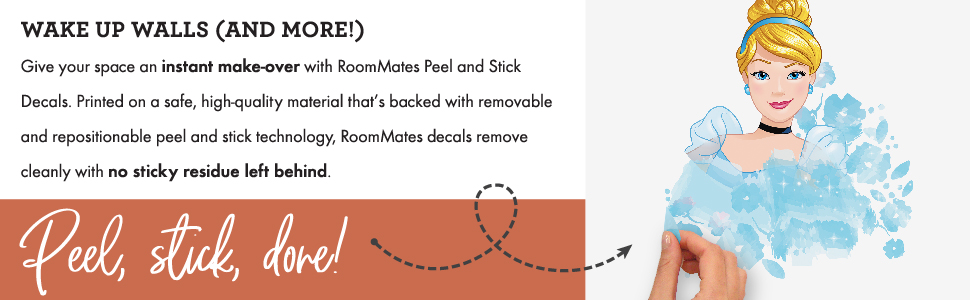 Create a beautiful scene with Disney Princess Floral Peel and Stick Wall Decals by RoomMates, and watch your room immediately come alive. Created with high quality vinyl ensuring a professional finish, apply decals in seconds on the wall ? just peel and stick. Proven 100% safe for walls, remove, reposition, and reuse as often as needed. Add this unique design to your room decor today.