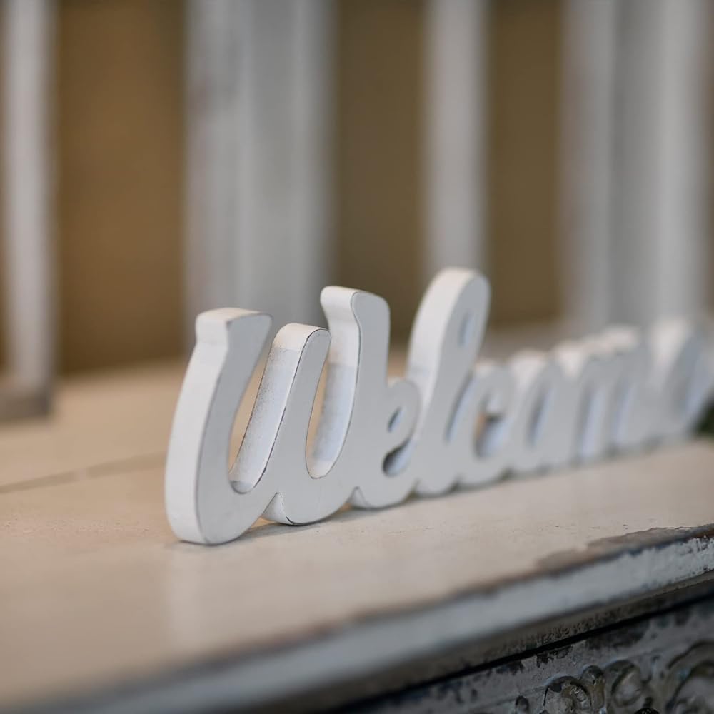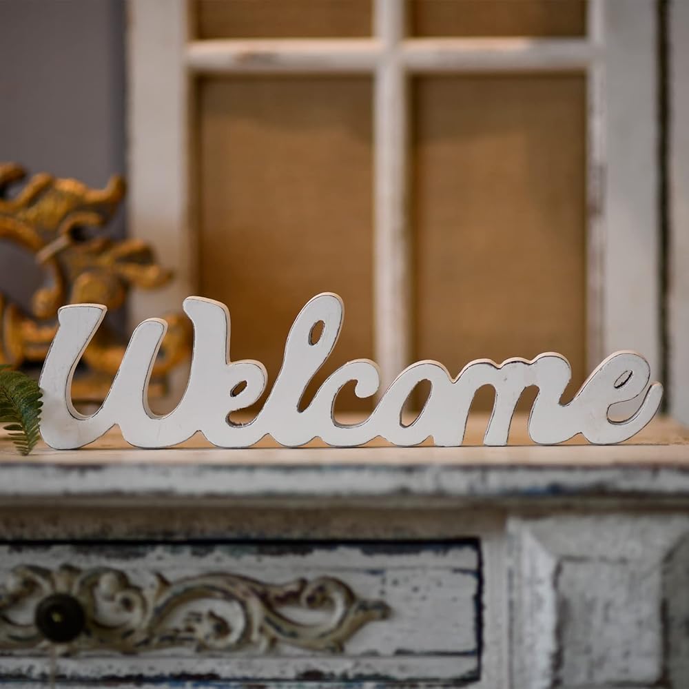 [هدية مثالية للتدفئة بالمنزل] 38.1 سم × 0.6 سم × 9.9 سم، تضيف اللمسة النهائية المتعثرة مظهرًا عتيقًا ساحرًا لتضيف إلى الجاذبية الخالدة لرسالة اللافتة البسيطة، كما يضفي تصميم اللون الأبيض المرح. مثالي لحفلات الزفاف وحفلات أعياد الميلاد. ، هووسورمينغ، عيد الهالوين، عيد الشكر وعيد الميلاد.