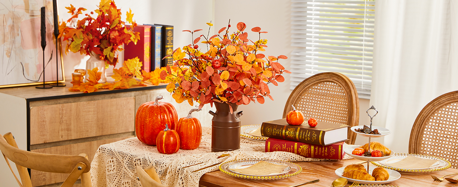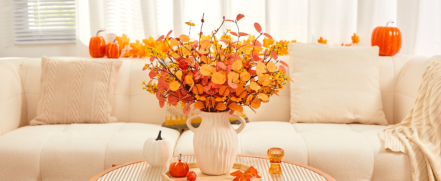 سيقان أوراق الخريف: سيقان الأوكالبتوس الخريفية باللون البرتقالي والأصفر، وهو تطابق مثالي لتقديم خصائص الخريف، ويمكن أن يجلب جو الخريف إلى غرفتك