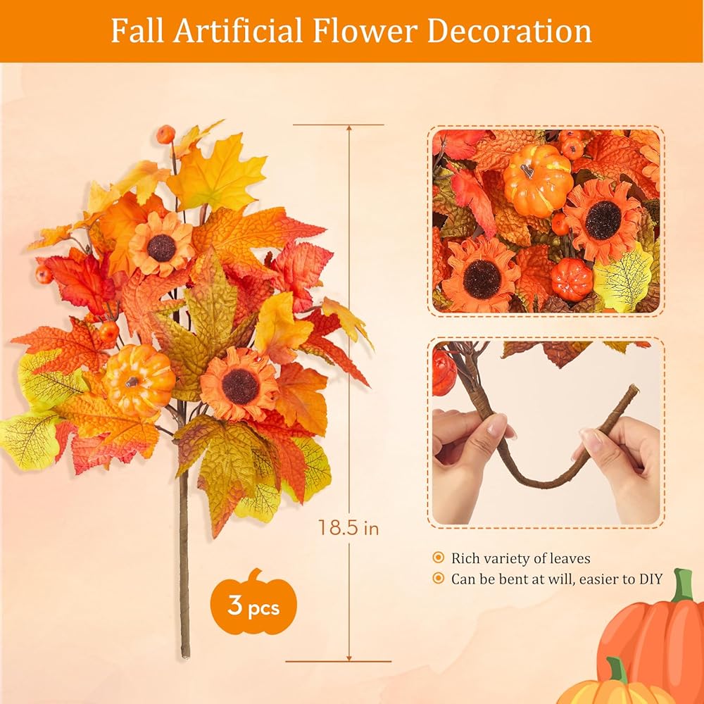 سهلة العناية: هذه السيقان الزهرية في الخريف مصنوعة من مواد صناعية ويسهل العناية بها. لن تبهت أو تذبل أو تذبل، ولا تحتاج إلى التنظيف، ولا تحتوي على روائح كريهة، مما يوفر لك الوقت والخبرة الثمينين. ووفقًا لاحتياجاتك، يمكنك القيام بنفسك بنفسك للعب دوره الأكبر