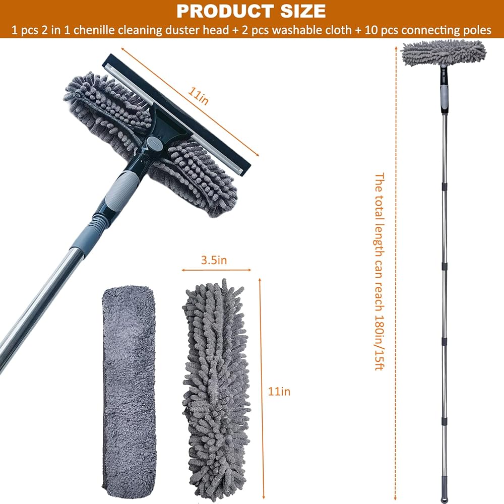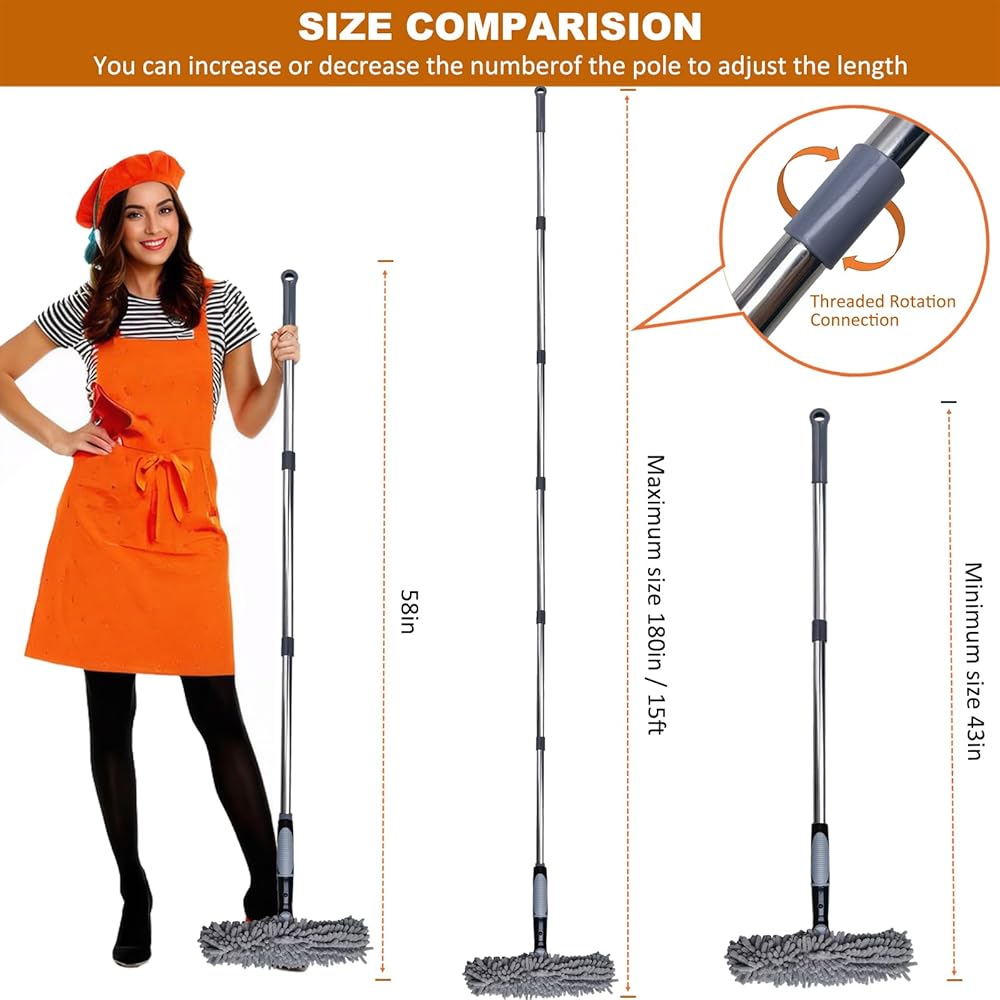 chenille cloth for quick surface cleaning. The upgraded extension rod, which can be extended up to 170 inches,