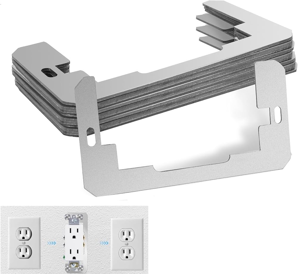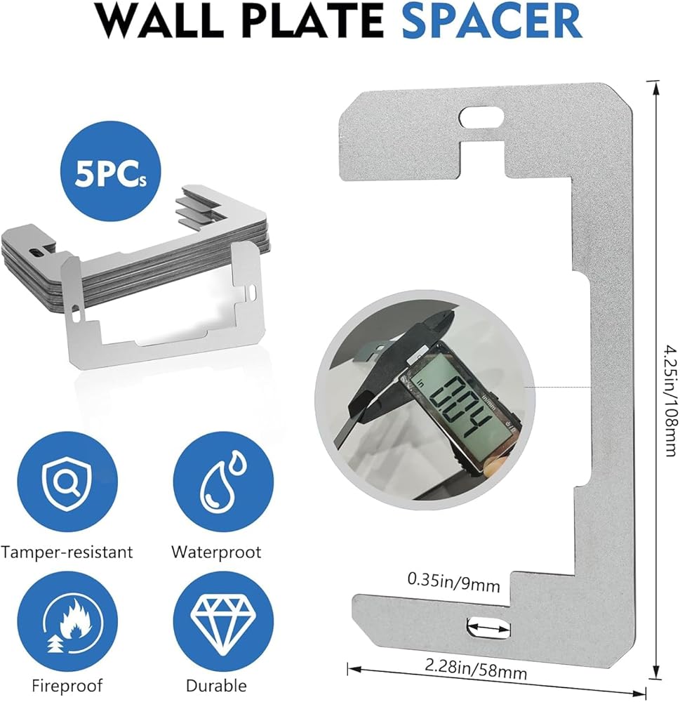• 🥇 GREAT SOLUTION---The outlet spacers for electrical box leveler plate worked well to bridge the gap in the cutout opening for your electrical outlets, correct electrical outlets that were recessed or wobbly following drywall repairs. electrical outlet box spacers are great as a leveler and for keeping the outlet box flush. Result in your device no longer being wobbly which is much safer and reduces the chance of fatigue on your electrical connections.