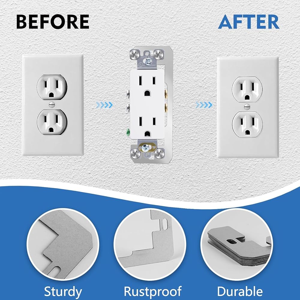 • 🥇 HIGH COMPATIBILITY---These loose outlet plug fix spacers are engineered to meet the requirements of most wall outlets and fixtures. Whether you're installing electrical outlets, switches, or other wall-mounted devices, these electrical box extender shimes provide the necessary support and clearance to ensure proper function and safety. Their adaptability makes them an essential accessory for any home or office improvement project.