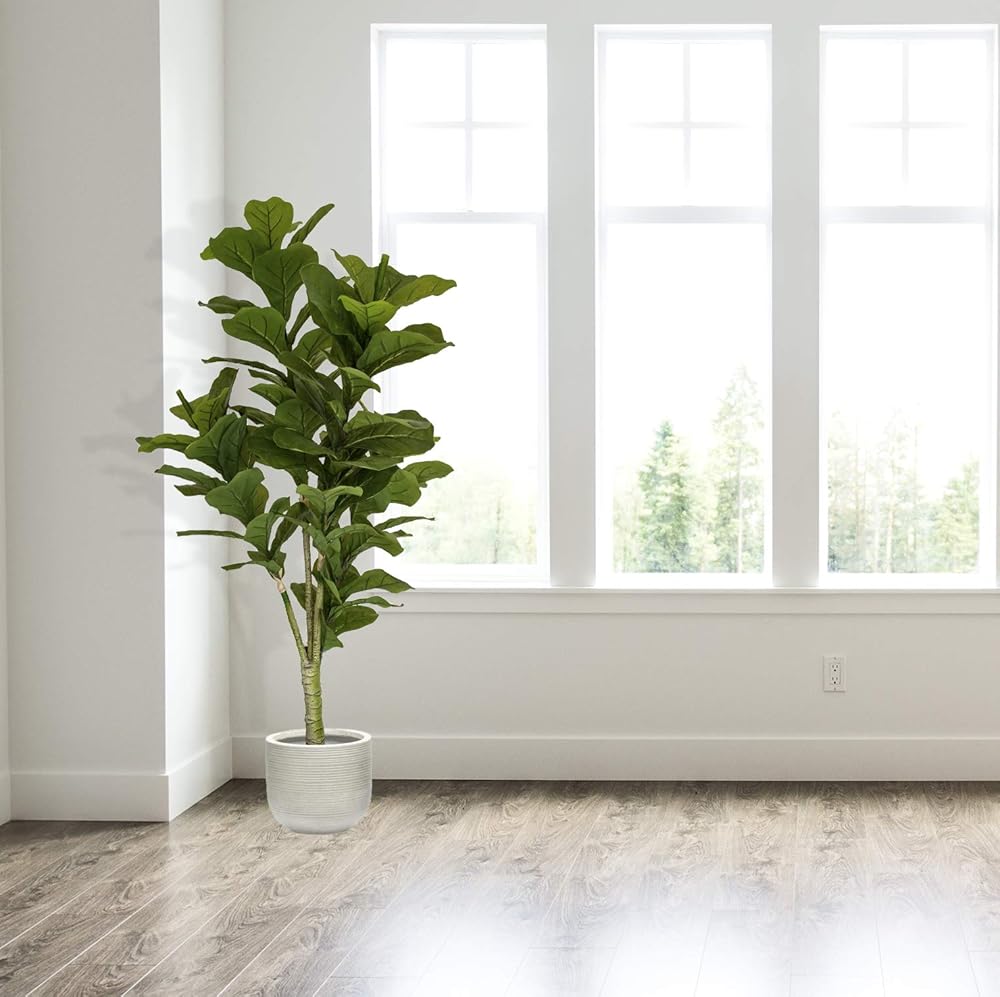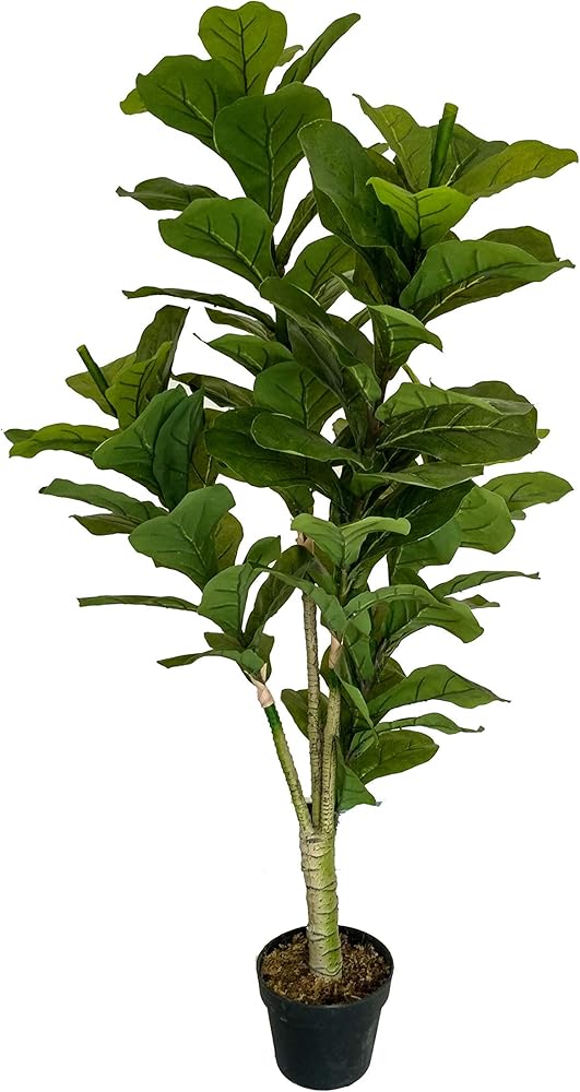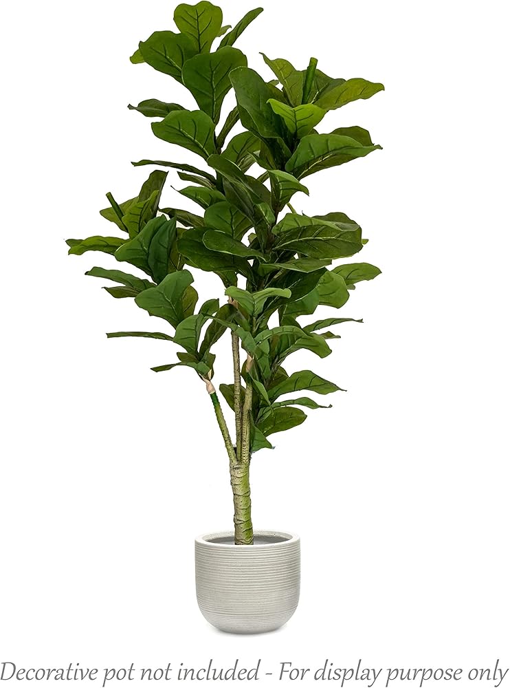 AMERIQUE نبات حرير صناعي رائع وكثيف من أوراق الكمان مع حماية من الأشعة فوق البنفسجية، مع وعاء بلاستيكي للحضانة، يشعر بالتكنولوجيا الحقيقية، جودة فائقة، 4.5 قدم، أخضر