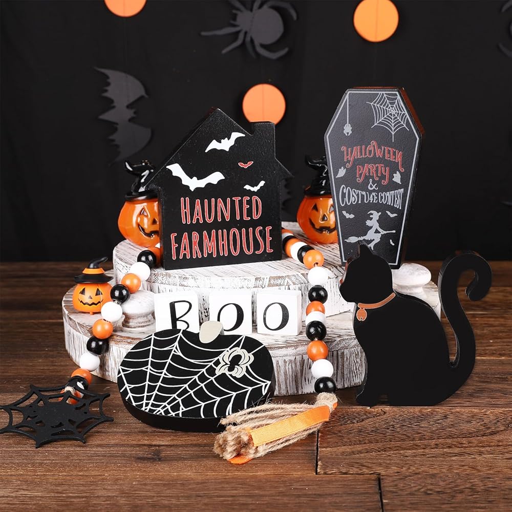 موضوع الهالوين: يتميز كل عنصر ديكور في هذه المجموعة بزخارف الهالوين الشهيرة مثل القرع والقطط والخفافيش والساحرات. الألوان النابضة بالحياة والتصميمات المعقدة تلتقط بشكل فعال جوهر الهالوين المخيف والمرح، مما يعزز على الفور الجو الاحتفالي في مساحتك الخاصة.