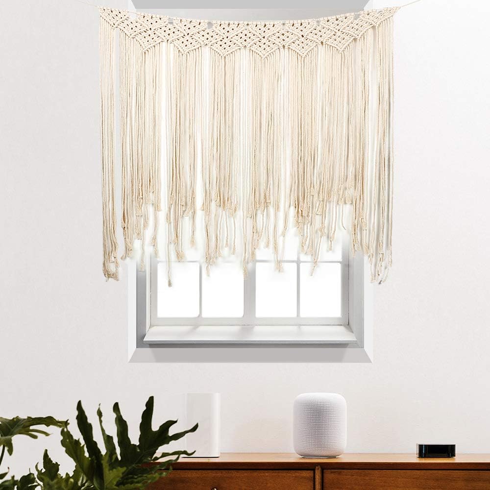 【فن بسيط】يمكن تعليق هذه الستارة المكرامية لتزيين حائطك، كما أنها معالجة نافذة بوهيمية رائعة، مما يجعل منزلك أكثر راحة. باستخدام مواد طبيعية تعطي إحساسًا بسيطًا، هذه التعليقة البسيطة والأنيقة مثالية لمحبي المتشرد لتزيين منازلهم. الغرفة، النوم، غرفة الأطفال، الباب، على جدار المعرض، فوق الأريكة أو بجوار النافذة لإضفاء لمسة بوهو على أي مساحة