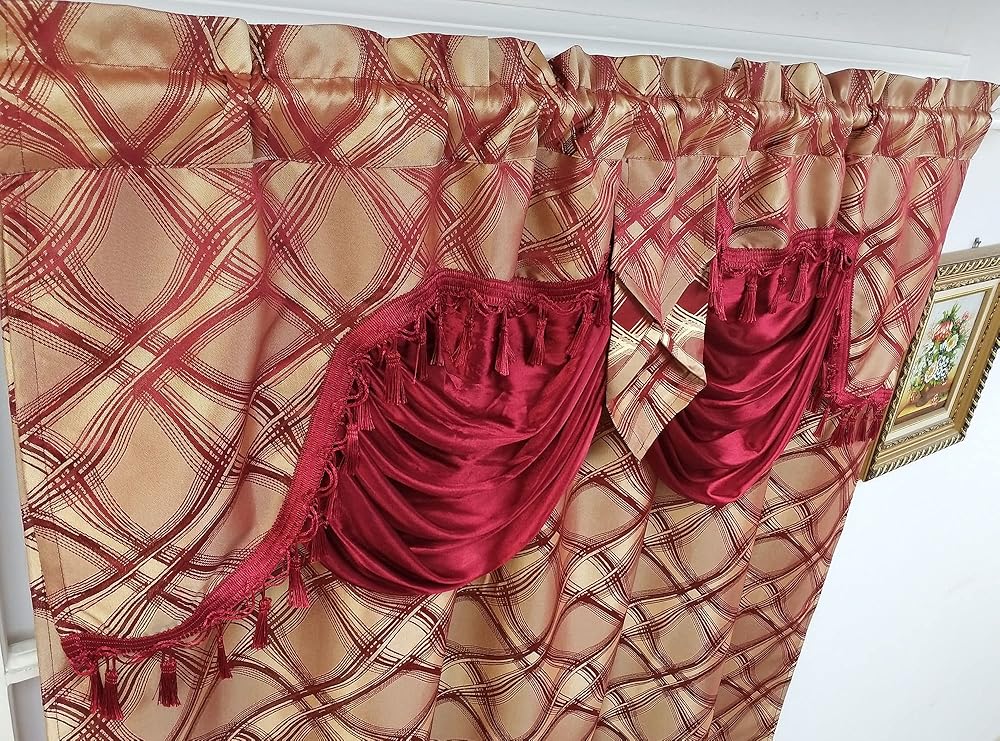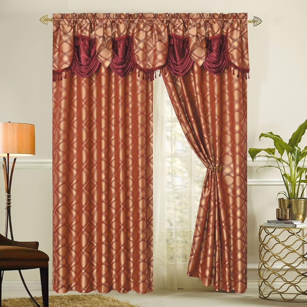 ملاحظة: تحتوي العبوة على قطعتين فقط من الستائر. جميع الملحقات الأخرى مثل الشراشيب، والوسائد، وستائر الفوال الخلفية في الصورة هي فقط لأغراض الديكور وليست متضمنة في المنتج. تفاوت الحجم في كل من الطول والعرض هو: +/- 1 بوصة.