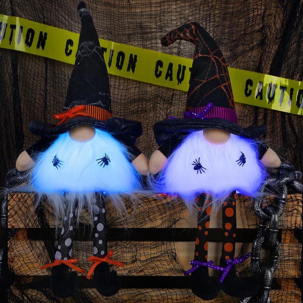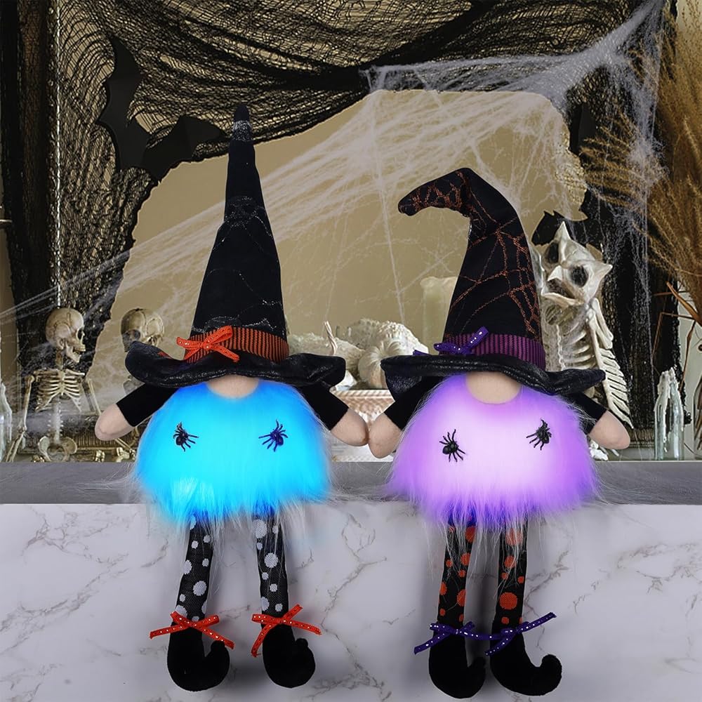 Juegoal 2 حزمة من ديكورات سطح الطاولة للهالوين، 17 بوصة من القطيفة المضاءة مع أرجل متدلية، إضاءة LED متغيرة الألوان هدية للعطلات، هدايا تمثال لديكور طاولة مهرجان الهالوين