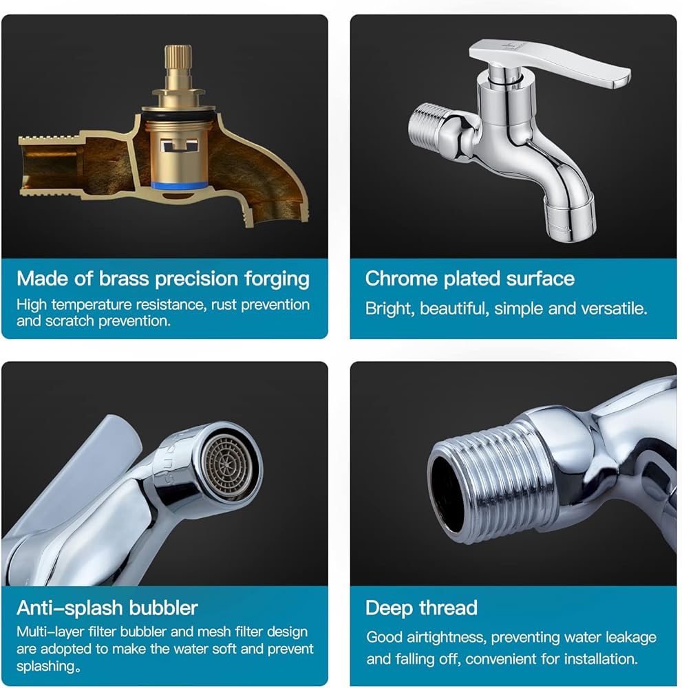 ✅ سيناريوهات الاستخدام الغنية: يمكن استخدام هذا الصنبور كصنبور خارجي، أو صنبور حديقة، أو صنبور حوض ممسحة الحمام، أو صنبور غسالة، أو صنبور خرطوم، ويمكن توصيله بمريلة خرطوم، حتى تتمكن من استخدامه في سيناريوهات مختلفة.