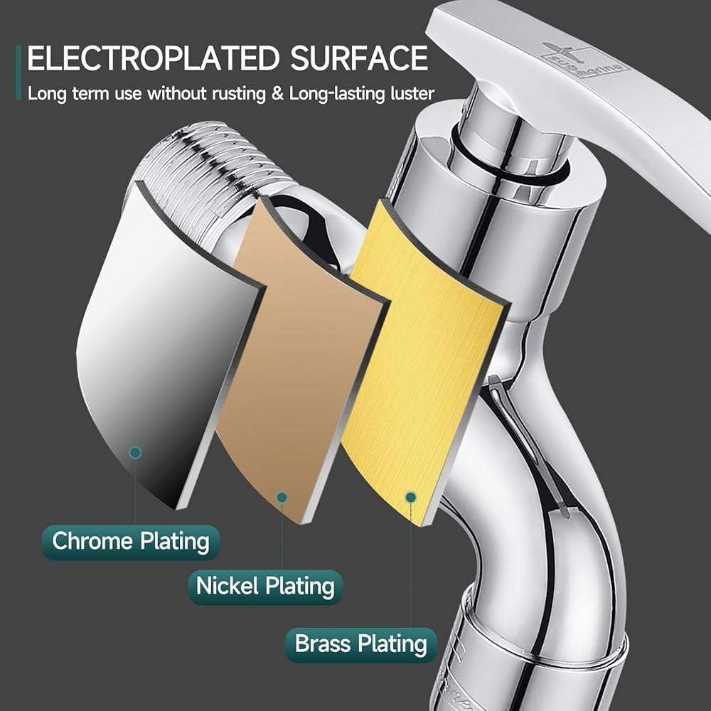 ✅ مادة متينة: هذا الصنبور الخارجي مصنوع من النحاس عالي الجودة، ومظهره مطلي بالكروم ومصقول. مضاد للتجمد ومضاد للتشقق، ومقاوم للتآكل والخدش، ومقاوم لدرجات الحرارة العالية ولا يصدأ.