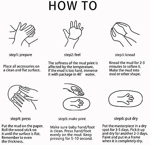 آمن للأطفال: مع الطين الآمن وغير السام، لن تحتاج إلى القيام بأي خلط أو خبز. إنه ناعم وسهل الضغط، لذلك يمكنك بسهولة تشكيل يدك الصغيرة وبصمة قدمك على الطين. يمكنك العثور على الخطوة في دليل التعليمات.