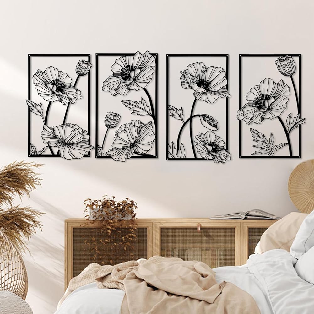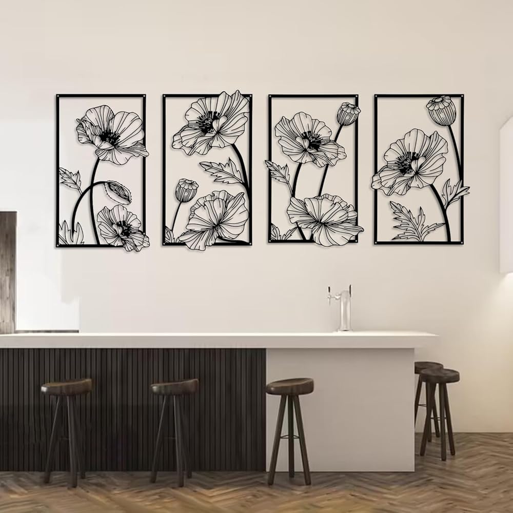 These hanging metal flower wall decorations adopt a minimalist and abstract design of line art, with meticulous cutting, smooth and hard surface, exquisite craftsmanship, and a beautiful outline of the flowers, creating a strong aesthetic atmosphere for your blank wall.