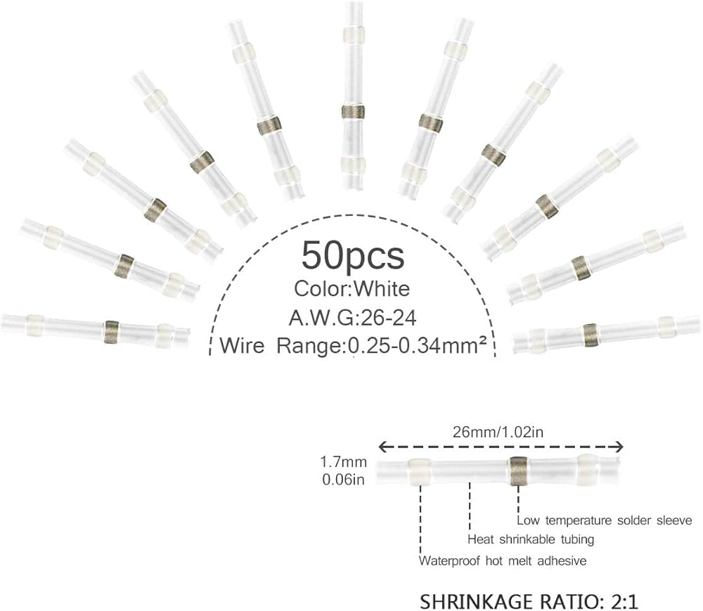1 x 50pcs heat shrink connectors (White)