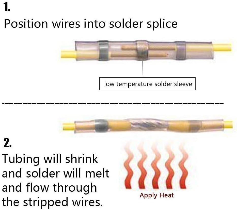 • No Slip Wire Contact - Tubing reduces in size and solder will melt and flow through the stripped wires, ensure strong holding --- your wire will never slip out of the connector. Can be ideal used in marine and automobile applications