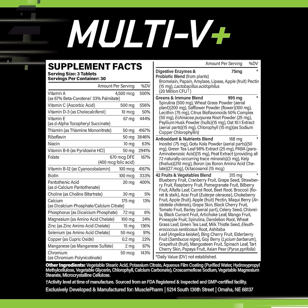 الفيتامينات المتعددة للرياضيين: تم تصميم MusclePharm Essentials Multi-V+ لتحفيز تعافي العضلات وإنتاج الطاقة ورفع مستوى الحيوية اليومية وصحة المناعة - درعك اليومي للحصول على صحة مثالية وأداء رياضي.