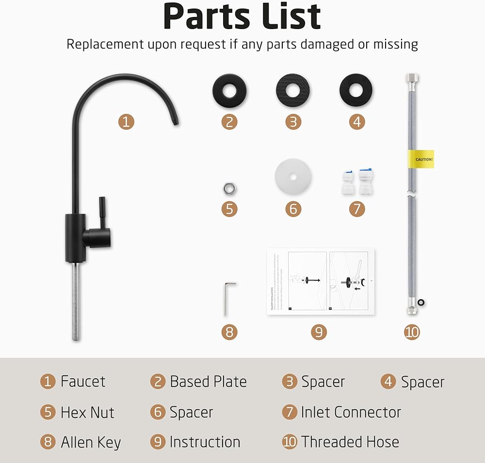 • سهولة التركيب: كل ما تحتاجه للتركيب متضمن: جسم الصنبور، وموصلات سريعة 1/4 بوصة و3/8 بوصة وأدوات تثبيت على سطح السفينة. يمكنك تركيب الصنبور على الفور بعد استلام العبوة.
