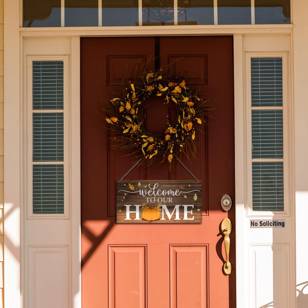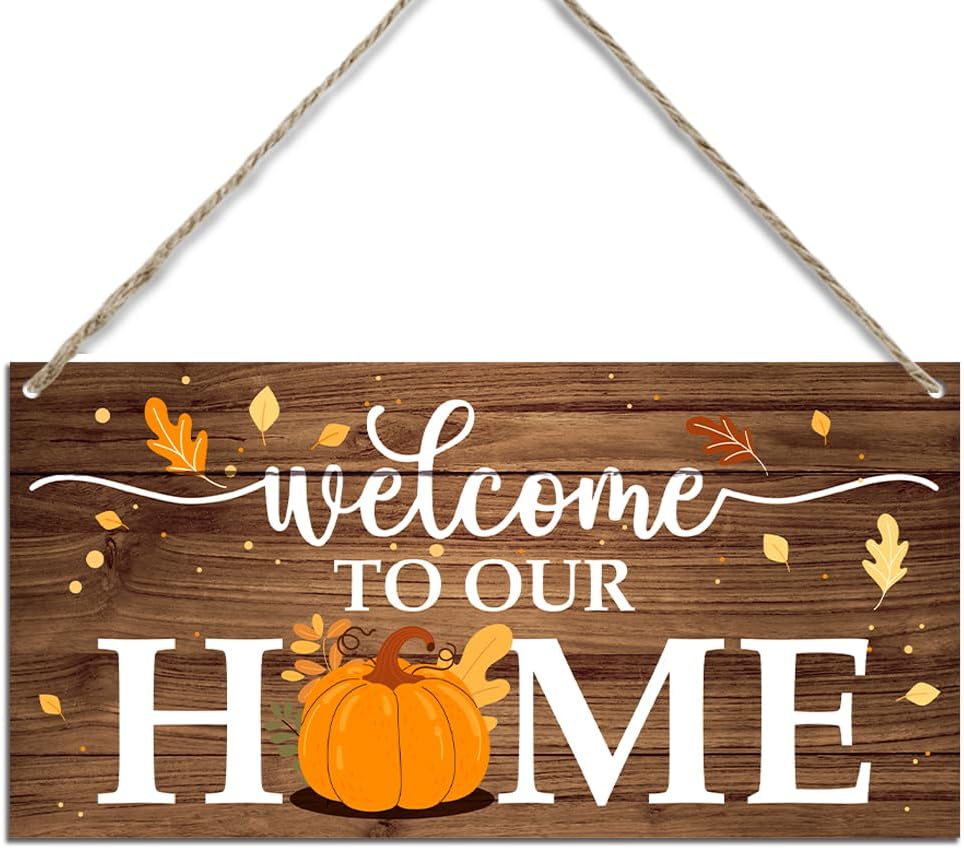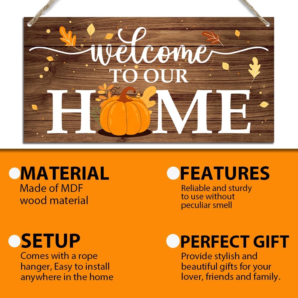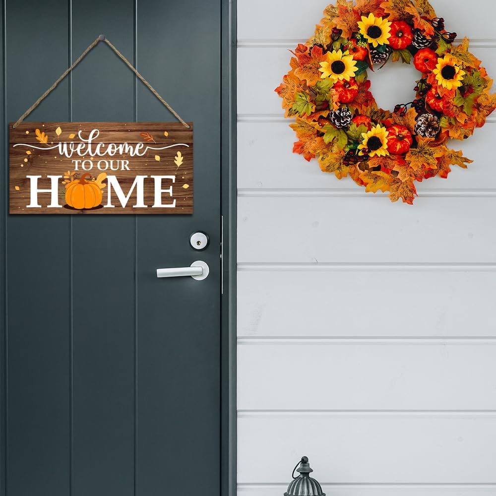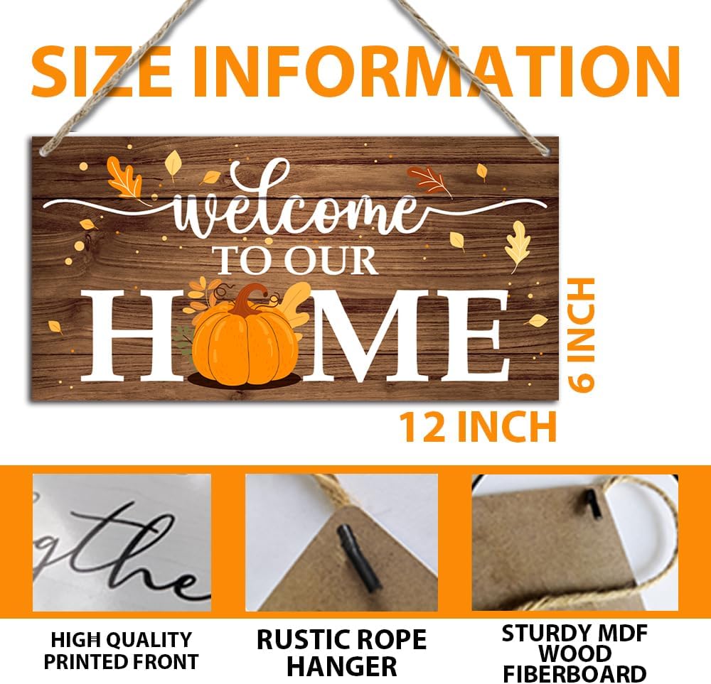 مرحبا الخريف الحصاد اليقطين مرحبا بكم في منزلنا ريفي شنقا باب خشبي علامة لوحة لباب المزرعة الأمامي المنزل ساحة الشرفة ديكور أوراق القيقب عيد الشكر ديكورات الحائط 12 × 6 بوصة