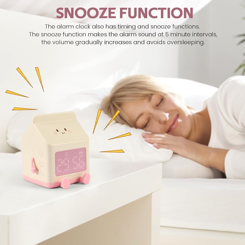 【SNOOZE FUNCTION】The alarm clock also has timing and snooze functions. The snooze function makes the alarm sound at 5 minute intervals, the volume gradually increases and avoids oversleeping.