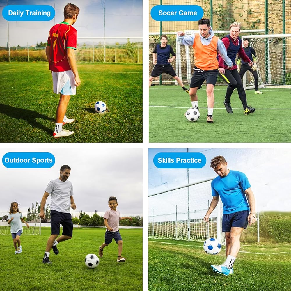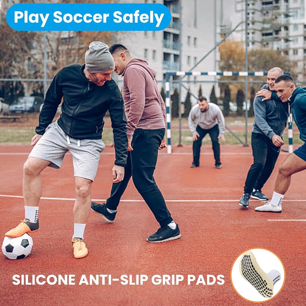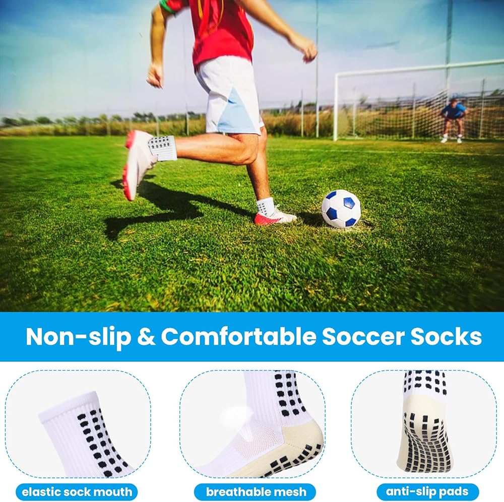 【 تصميم وسادة سيليكون مضادة للانزلاق 】: تم تصميم الجزء السفلي والكعب من جوارب كرة القدم مع وسادات سيليكون مضادة للانزلاق، والتي تتميز بوظيفة جيدة مضادة للانزلاق وثبات، ويمكن أن تعزز القوة المتفجرة، مما يسمح لك بأداء أفضل في هذا المجال.
