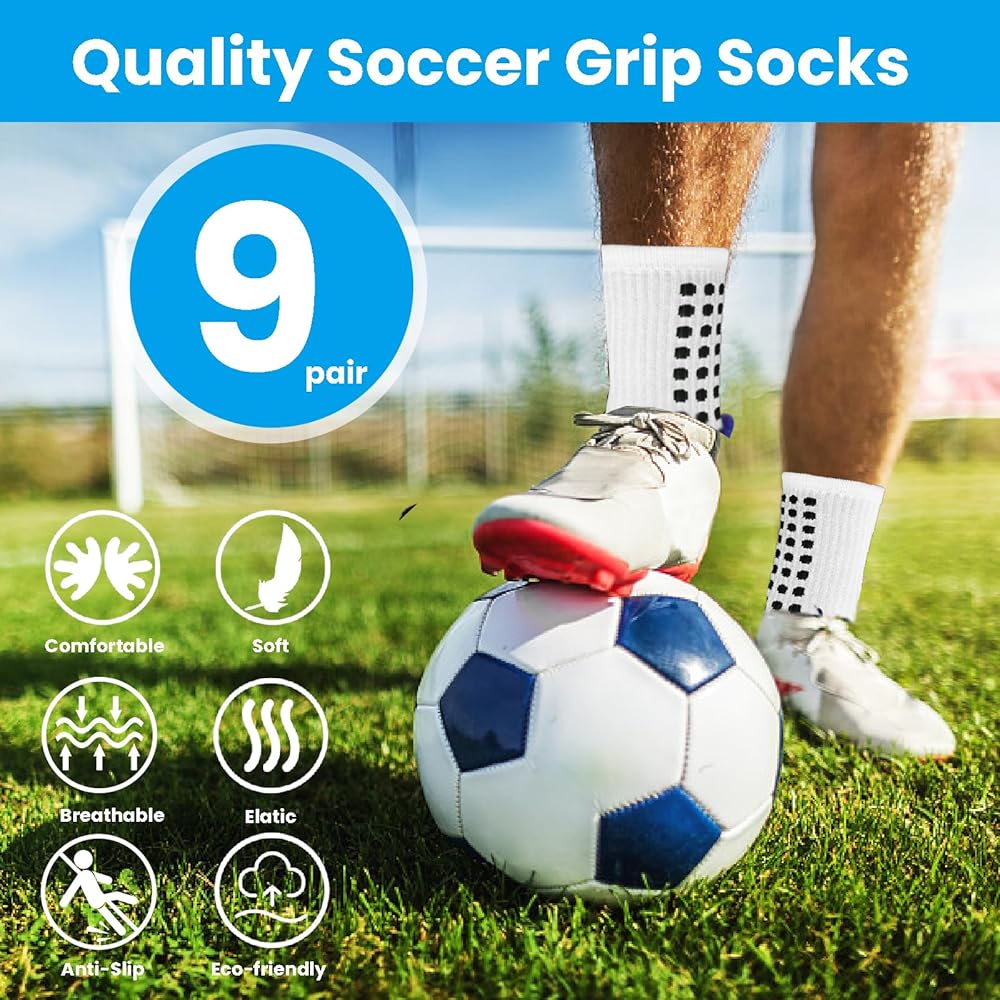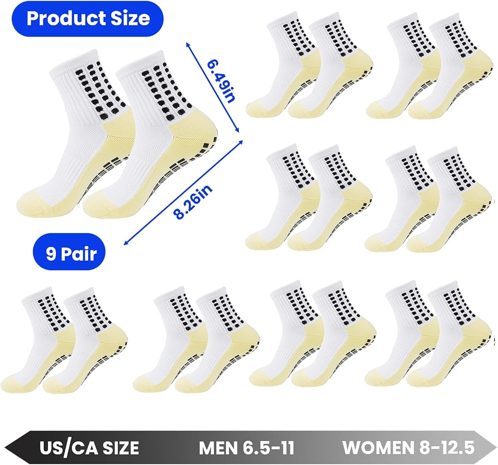 【 9 أزواج من الجوارب ذات المقبض 】: سوف تحصل على 9 أزواج من جوارب كرة القدم ذات المقبض الأبيض. الكمية الكافية كافية لتلبية احتياجات التمارين اليومية والاستبدال.