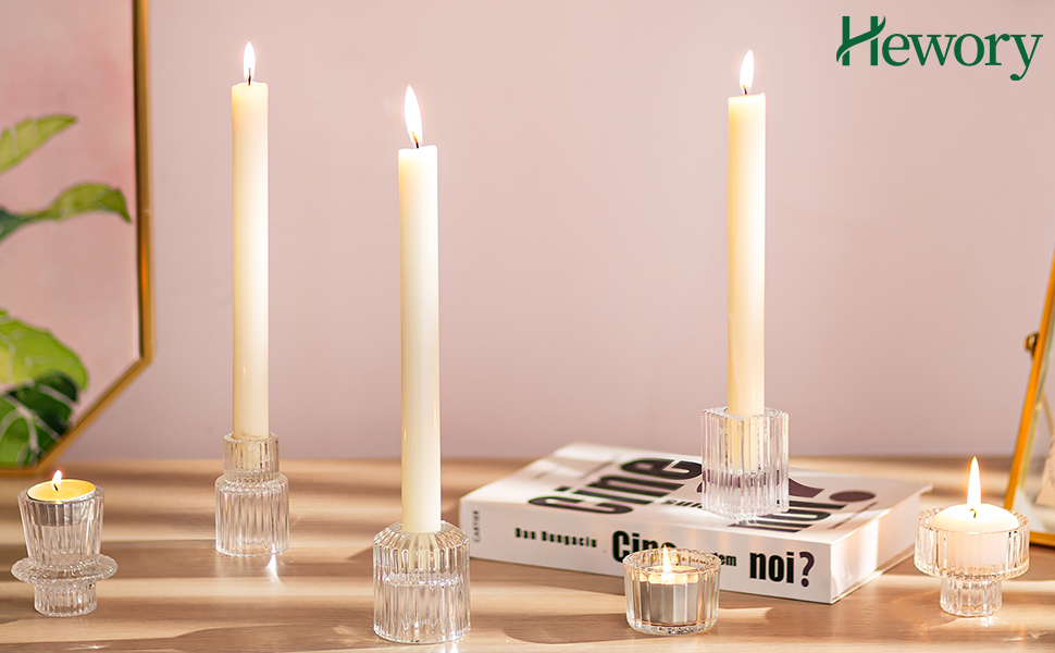 【زجاج ممتاز】تم تصنيع حوامل الشموع المستدقة هذه من زجاج سميك عالي الجودة وخالي من الرصاص، وواضح تمامًا، وناعم وقوي، مع وزن كافٍ لمنعها من الانقلاب أثناء الاستخدام.