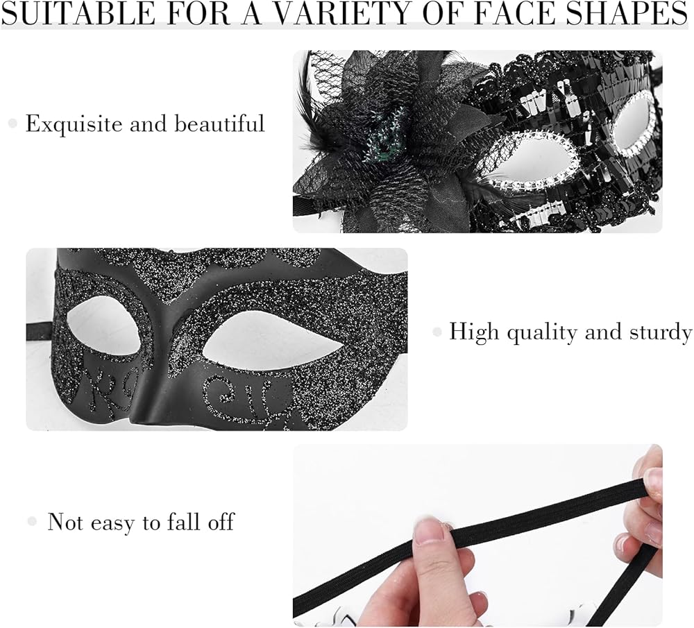 استخدامات متعددة - تعتبر الأقنعة التنكرية للأزواج مثالية لمجموعة واسعة من المناسبات بما في ذلك الحفلات التنكرية، والهالوين، والكرنفالات، وماردي جراس، والحفلات التنكرية، والنوادي الليلية، وحفلات الزفاف، والعروض المسرحية، والعديد من الاحتفالات والمناسبات.