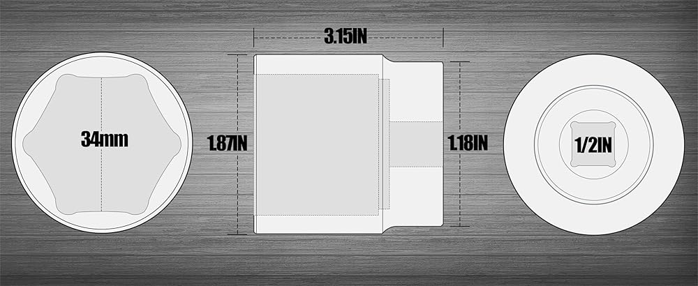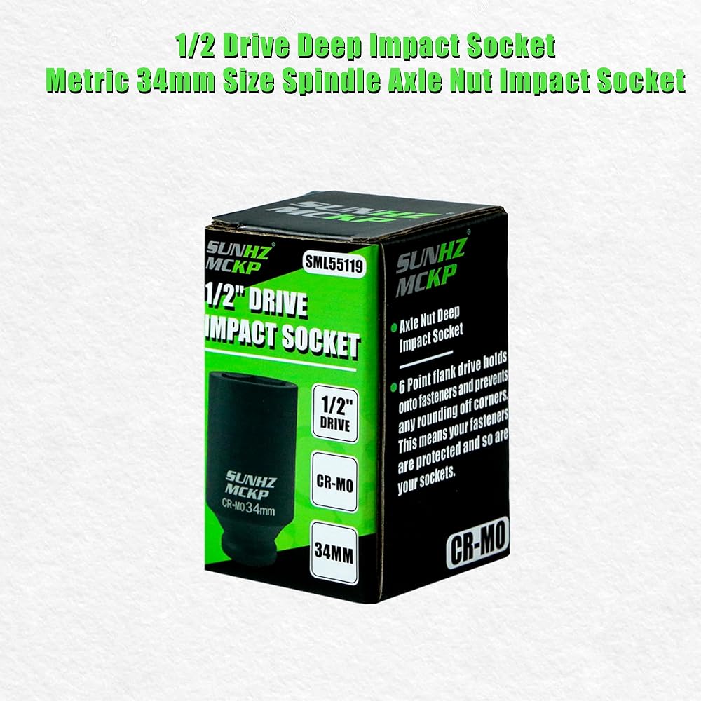 مقبس تأثير كبير: تم تصميم مقبس الصدمات 1/2 هذا للاستخدام مع مفاتيح الربط ومحركات الصدمات. مقابس ذات 6 نقاط مع محرك 1/2 بوصة، مقبس كبير جدًا وعميق يستخدم لتثبيت وتفكيك وإصلاح مسامير صواميل العجلات أو المحور في المركبات.