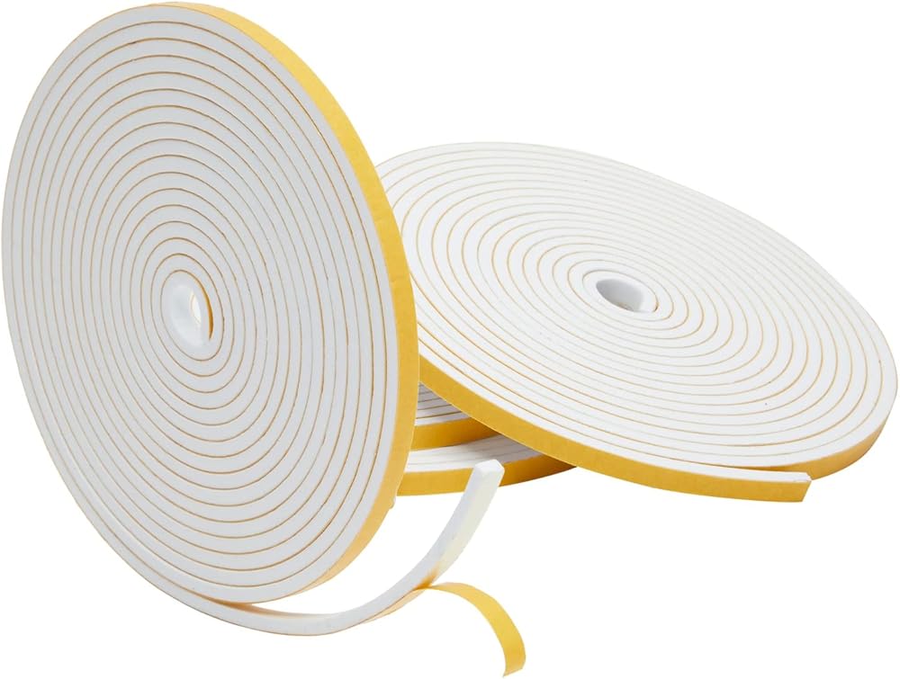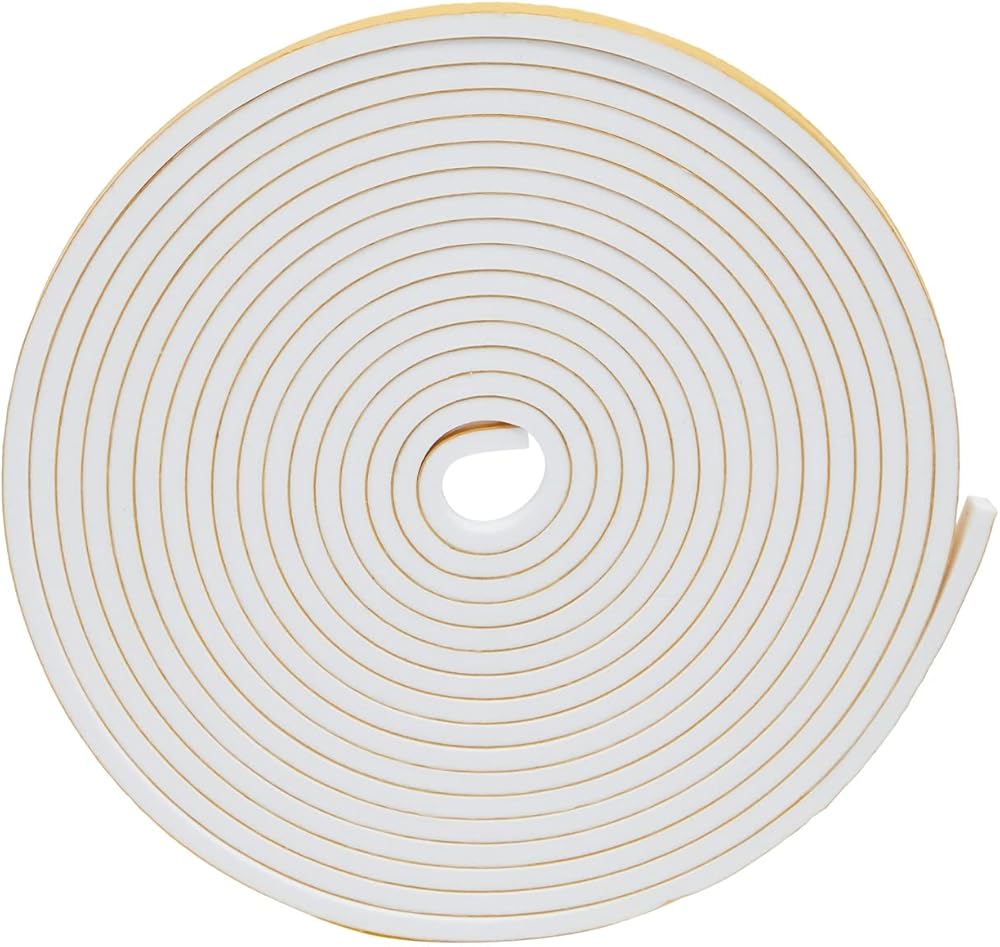 Keep your home at the perfect temperature all year round with these adhesive weather stripping tape rolls. The foam tape can also be used for sound insulation, speakers, sports equipment, and electrical cabinets. Simply peel off the backing and adhere. The 16.4-foot white foam seal roll measures 1/4 inch wide x 1/8 inch thick but can easily be cut and conformed into both exterior and interior doors and windows.