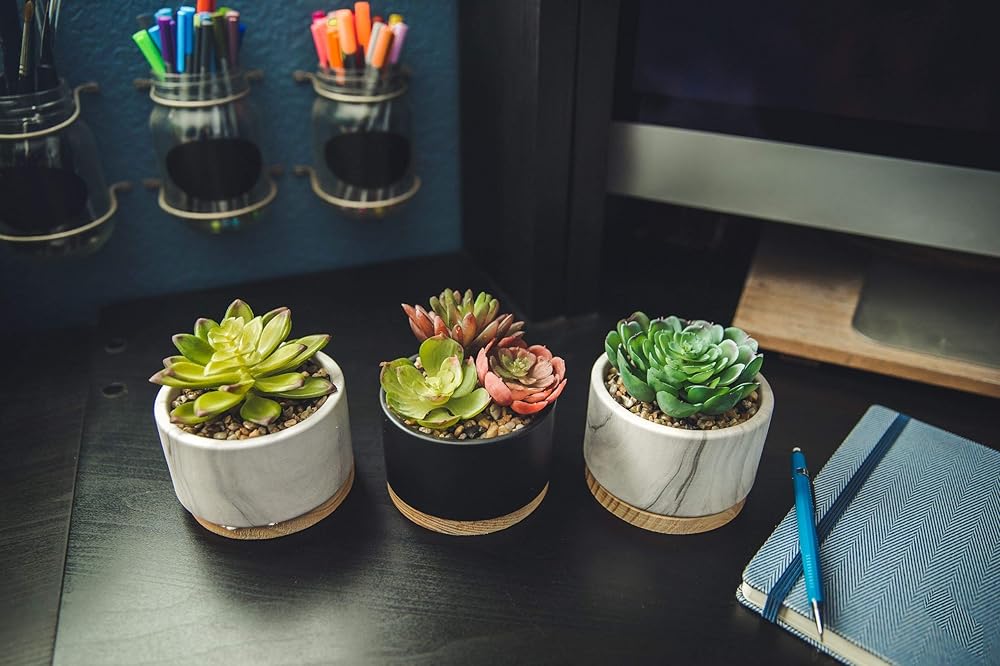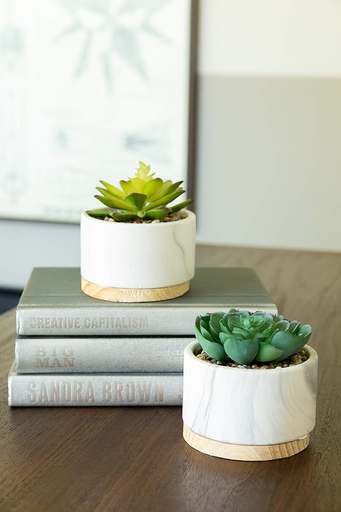 - مضاعفة الأناقة! ضع مزارعي الرخام الاصطناعي هذا بقاعدة خشبية في أي مكان في منزلك أو مكتبك لإنشاء واحة داخلية.