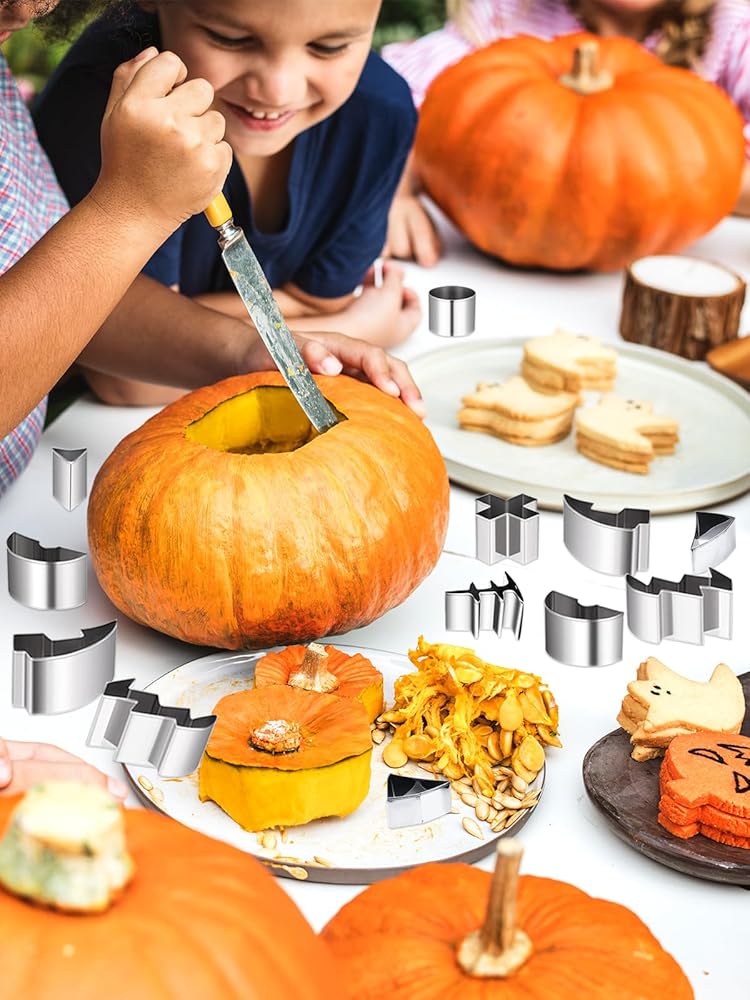 【Happy Hour】 Pumpkin carving cookie cutters are perfect for family and friends. It's a great pumpkin carving tool. Because with it, you can have creative and joyful happy memories with your family.