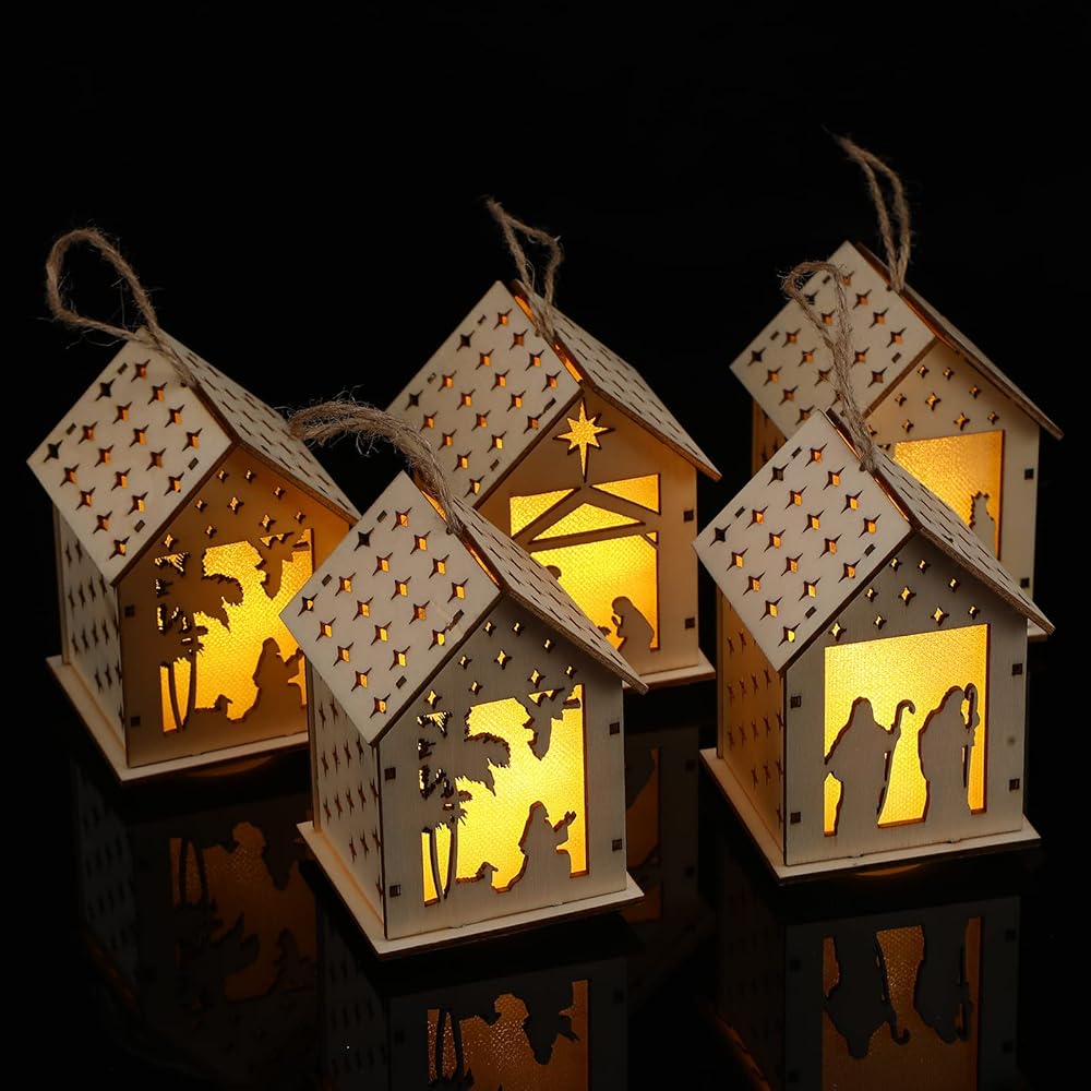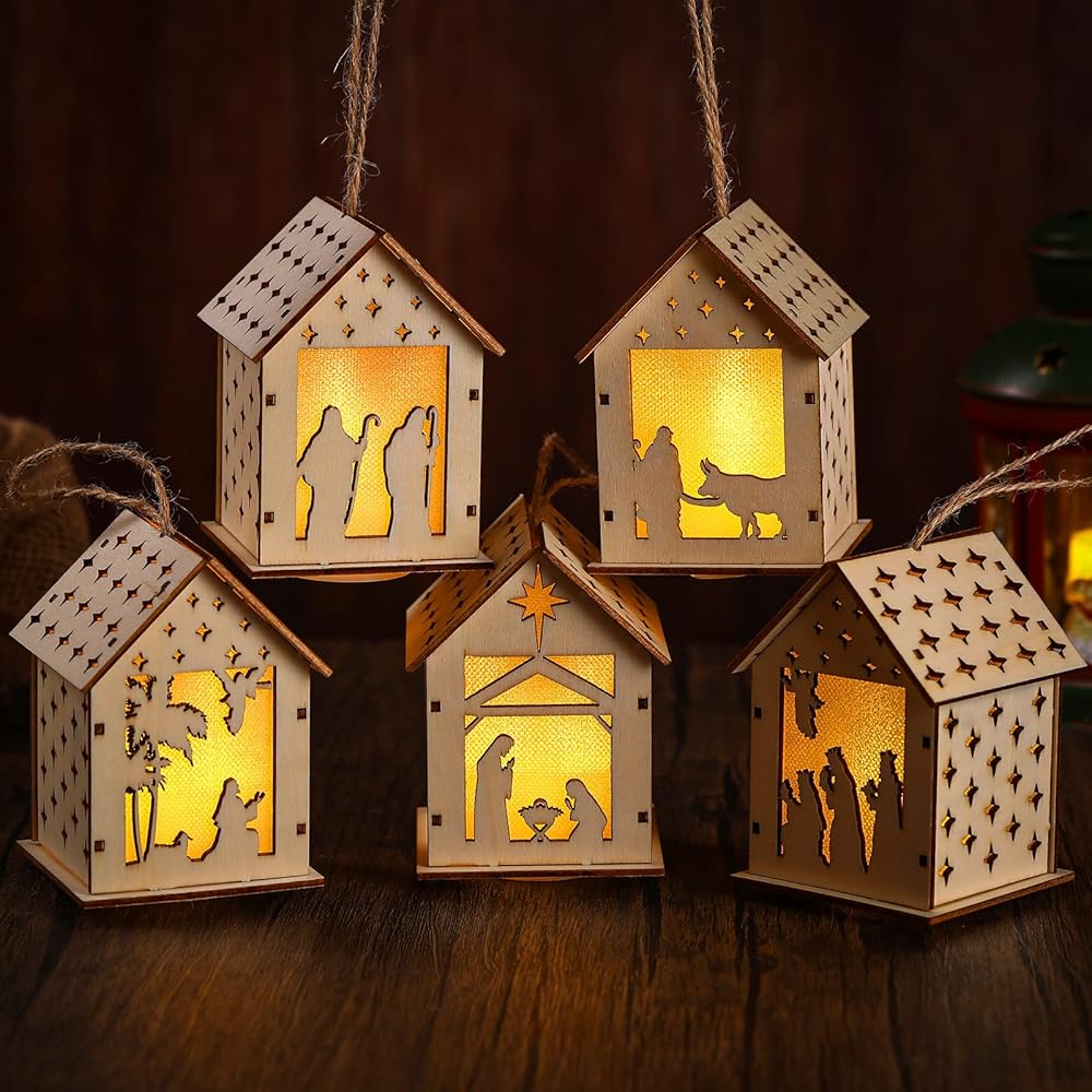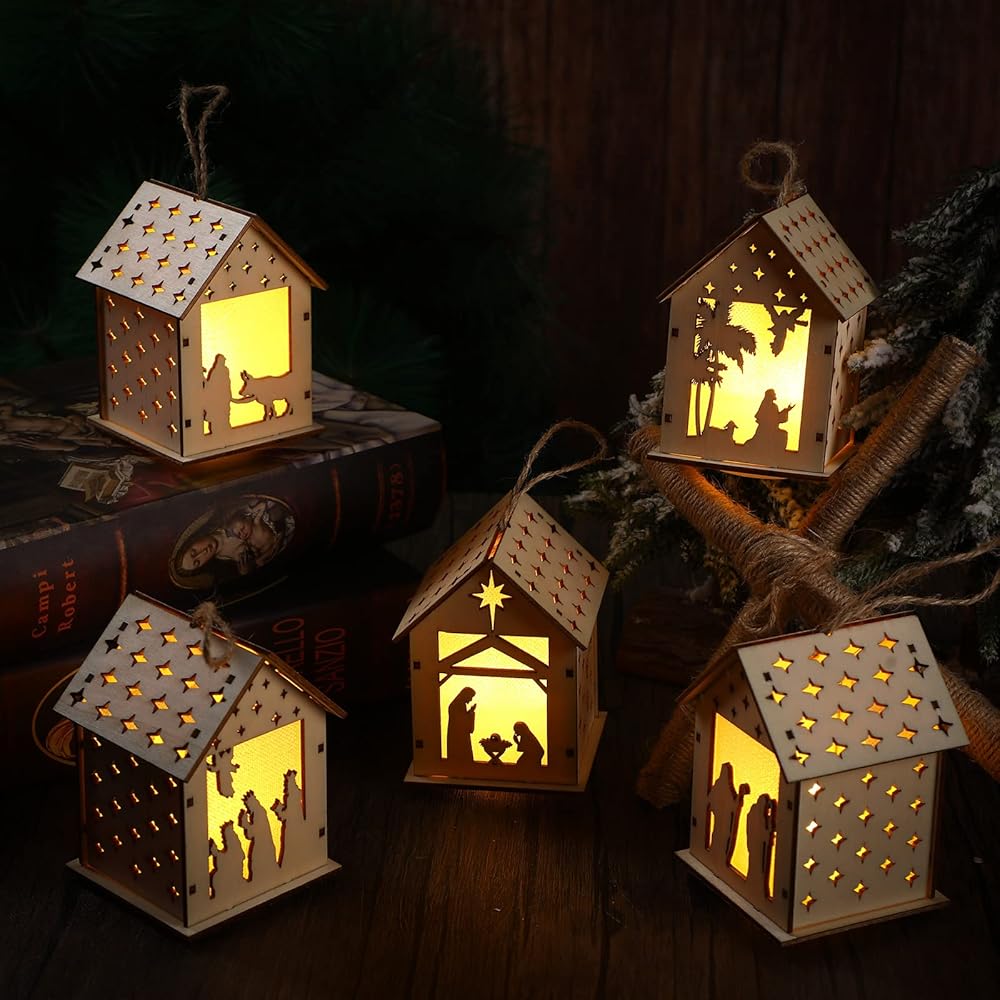5 x Lighted nativity scene Christmas ornaments