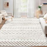 سجادة المنطقة الحديثة: تم تصميم سجادة المنطقة هذه بنمط بوهيمي ومغربي باستخدام مزيج من الخطوط والأشكال الهندسية، وهي قادرة على الاندماج في أي نمط تصميم داخلي بسهولة، ويمكن أن تضيف الأناقة والموضة إلى مساحة منزلك.