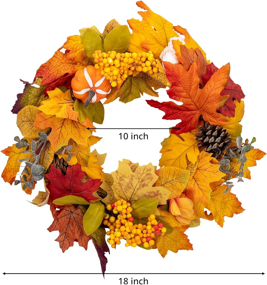 الحجم المثالي: يبلغ قطره 45.72 سم، إكليل الخريف الخاص بنا ذو حجم مثالي لتزيين أي باب أو جدار. لاحظ أنه نظرًا لأن الإكليل مضغوط بواسطة الصندوق لتجنب تعرضه للتلف أثناء التسليم، يرجى تمديده بالكامل للوصول إلى الحد الأقصى لحجمه.
