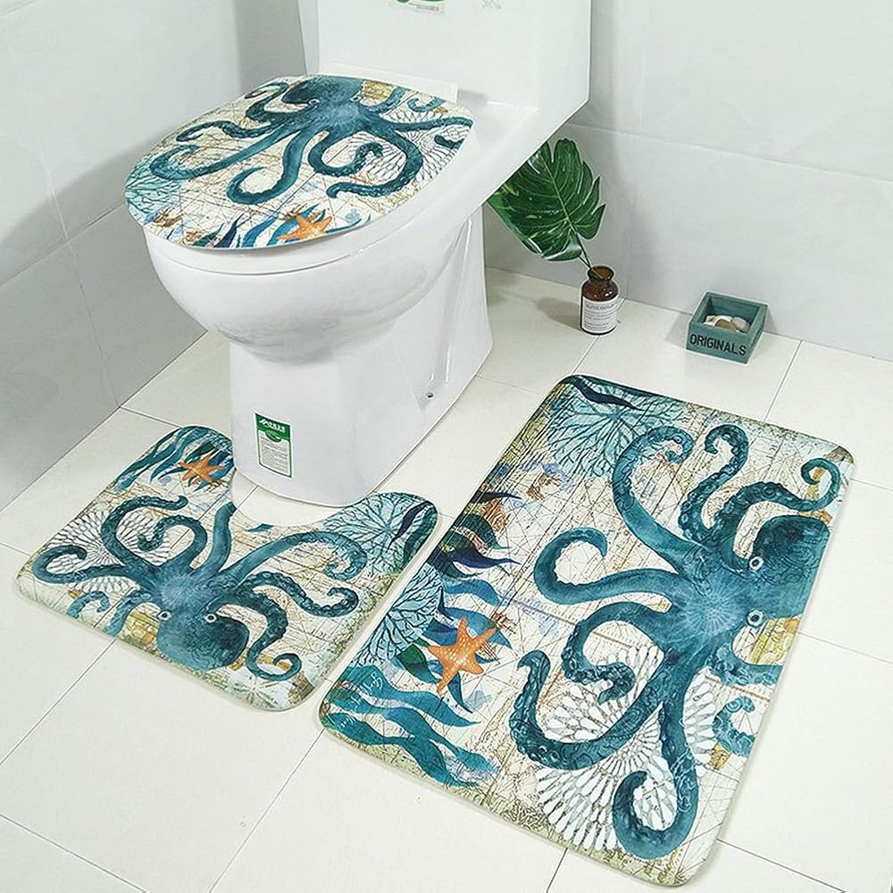 Moolecole 3 Pcs Bath Mat Set is using Polyester material, flannel top,neoprene rubber non-slip backing. Great for toilet mat, floor mat, bathroom mat, indoor mat and kitchen mat. Easy to wash, long life time using. Crafted of super-soft flannel material, it features a looped surface that provides extra softness for your feet. The microfiber construction makes it more absorbent than cotton. Featuring a non-slip backing, it gives you a place to stand at the vanity and adds stability when stepping in or out of the bathtub or shower.