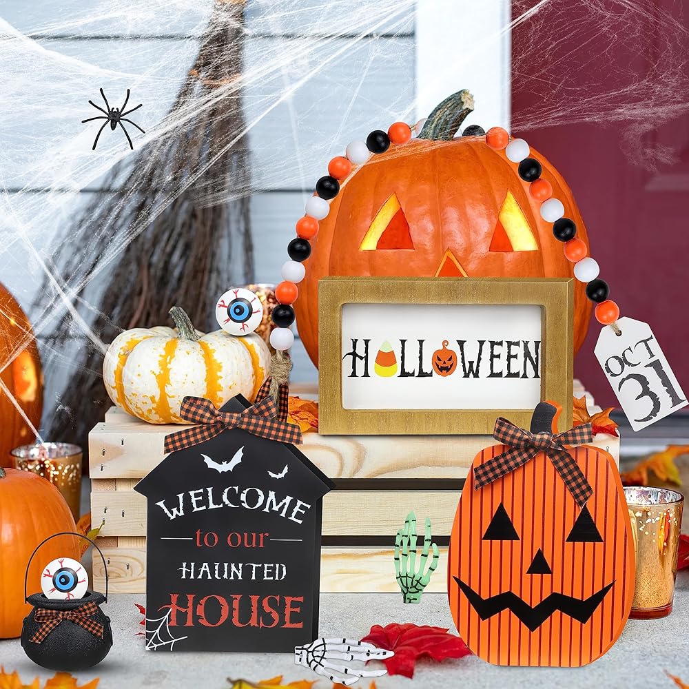 عناصر موضوع الهالوين - تم تصميم مجموعة ديكورات صينية الهالوين هذه في المزرعة مع عناصر الهالوين الكلاسيكية، مثل مقلة العين، العنكبوت، اليقطين، مرجل الساحرة، إلخ، وكلمات "هالوين"، "مرحبًا بك في منزلنا المسكون" ستجعل الهالوين الخاص بك الزخارف أكثر لافتة للنظر هذا العام.