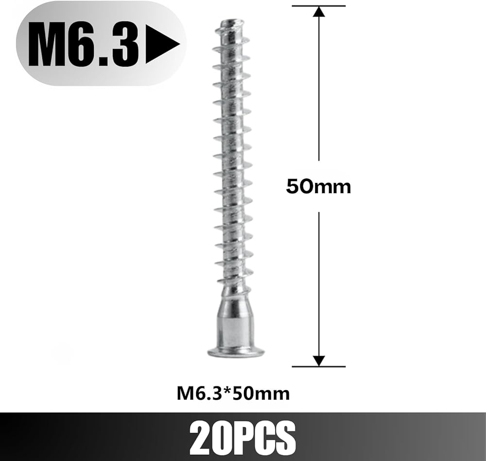 كمية كبيرة: تحتوي العبوة على 20 قطعة براغي للعديد من تطبيقات تجميع الأثاث وإصلاحه. ممتاز لتجميع الأثاث المعبأ بشكل مسطح أو بناء مشاريع نجارة متينة. سوف يبقى قويًا دون أي انقسام أو تجريد.