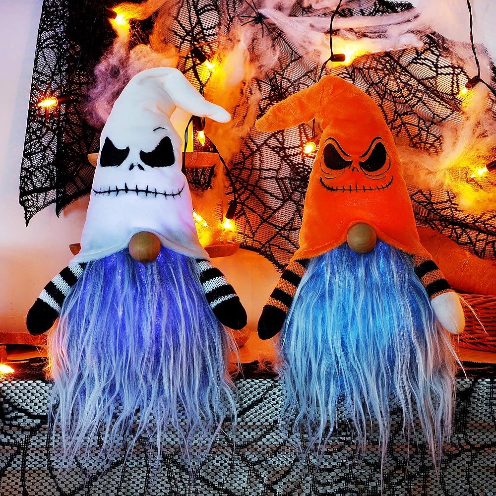 عبوتان من أقزام الهالوين المضيئة مقاس 35.56 سم: هذه الأقزام القطيفة المضيئة الرائعة للهالوين مع قبعة مدببة ولحية رمادية طويلة هي زينة لسطح الطاولة للهالوين لا غنى عنها في منزلك! إنها زخارف مشهورة في أيام العطلات ومناسبة جدًا لنشر الروح التقليدية.